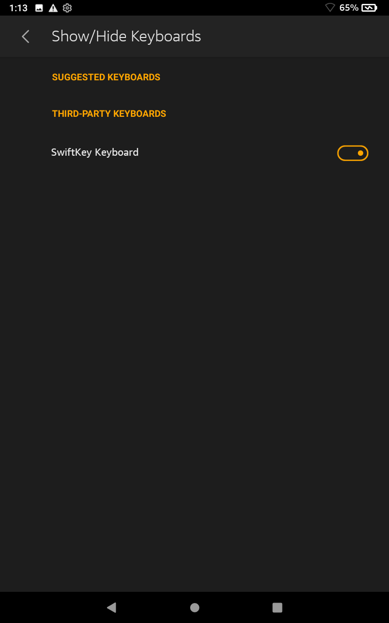 그러면 태블릿 설정의 Show/Hide Keyboards 화면으로 넘어가는데요.