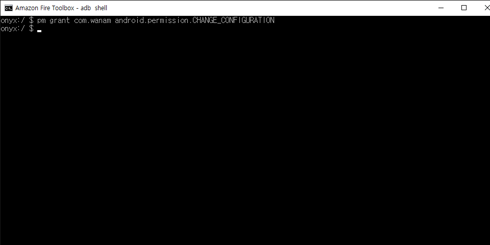 여기에 'pm grant com.wanam android.permission.CHANGE_CONFIGURATION' 라는 명령어를 입력합니다.
