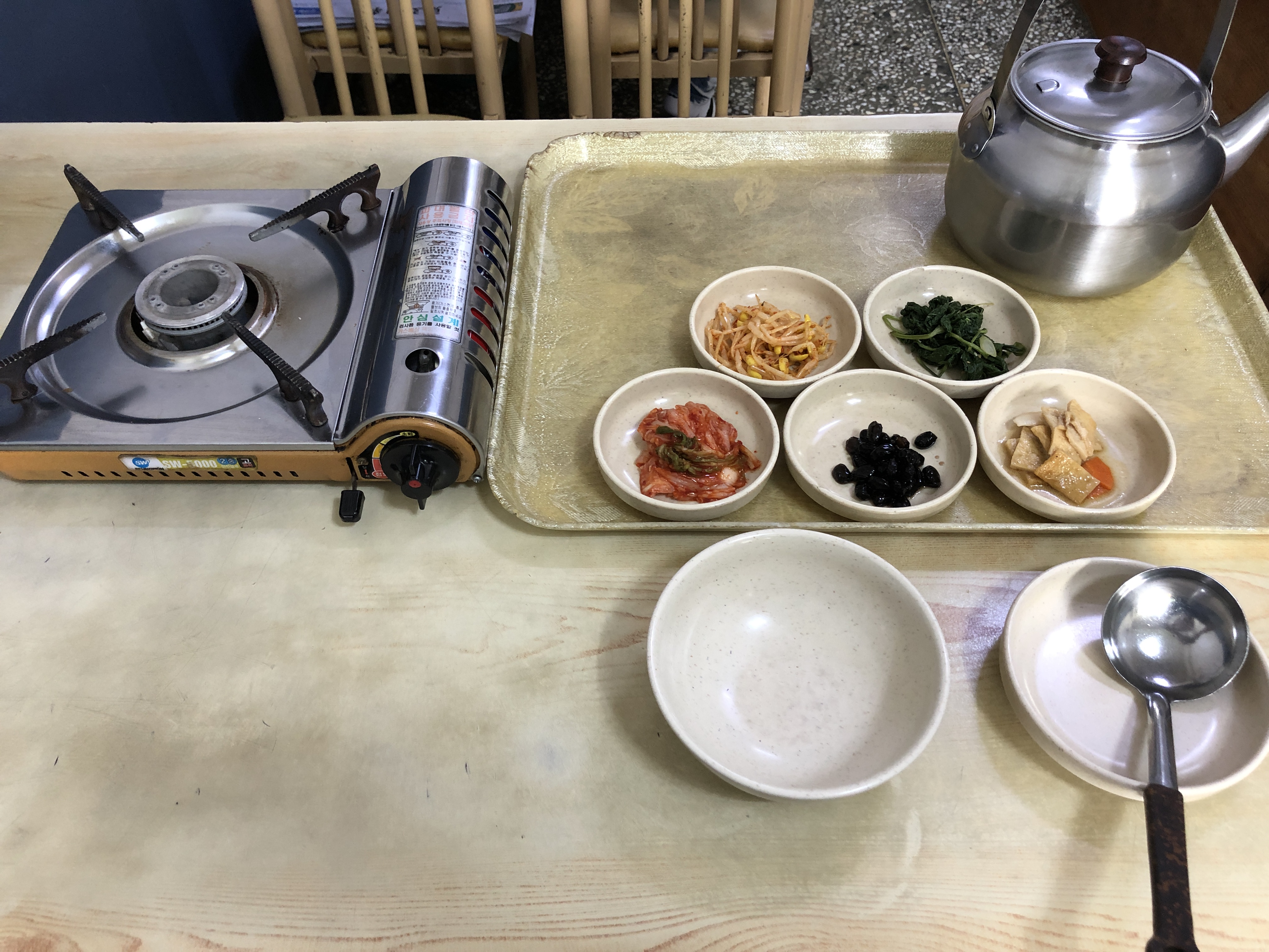 주문을 하니 밑반찬과 가스버너를 세팅해주고