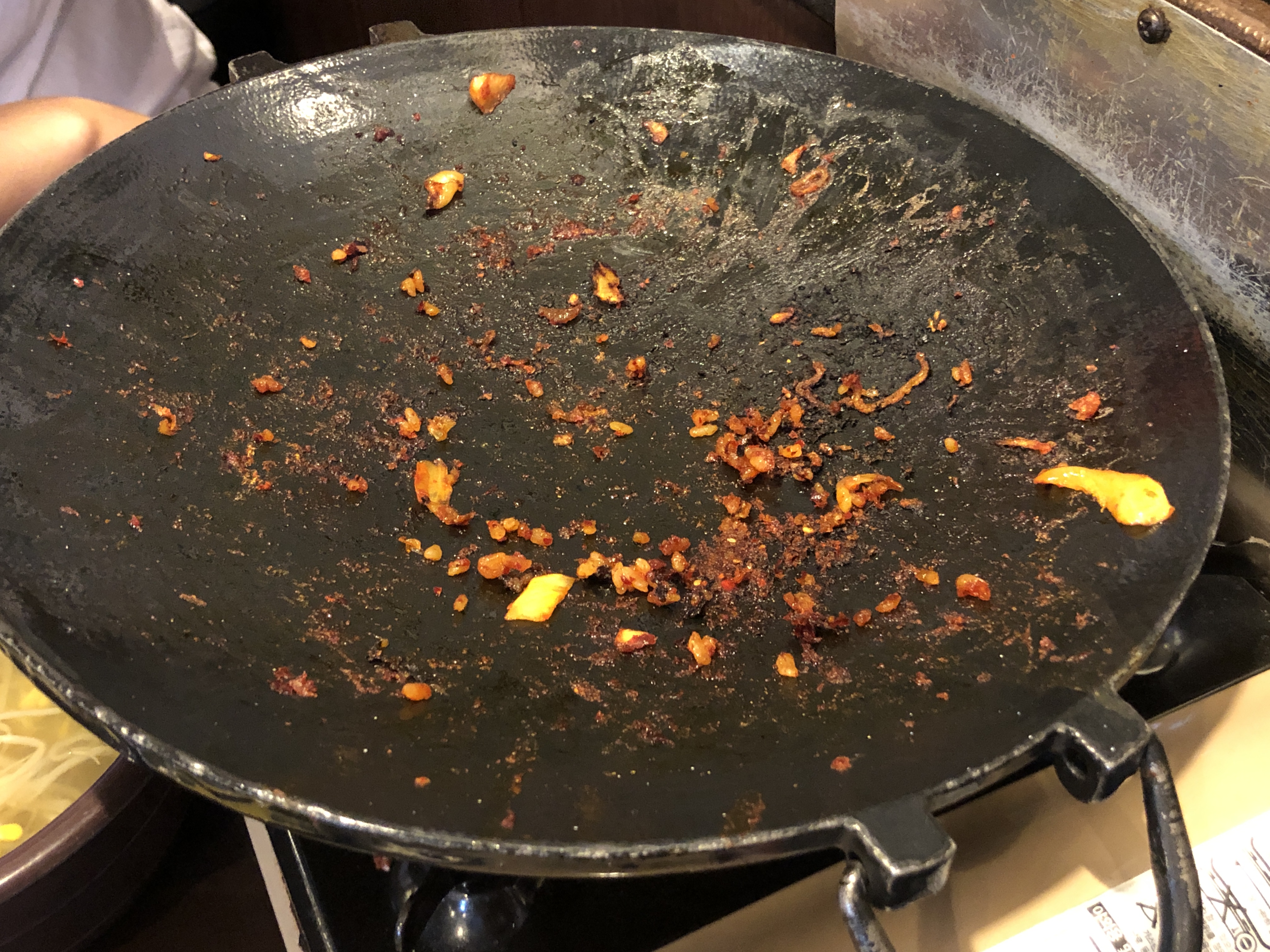 뜨거운 철판 위에 살짝 눌은 볶음밥을 숟가락으로 잘 퍼 앞접시에 가져다 놓으려는데