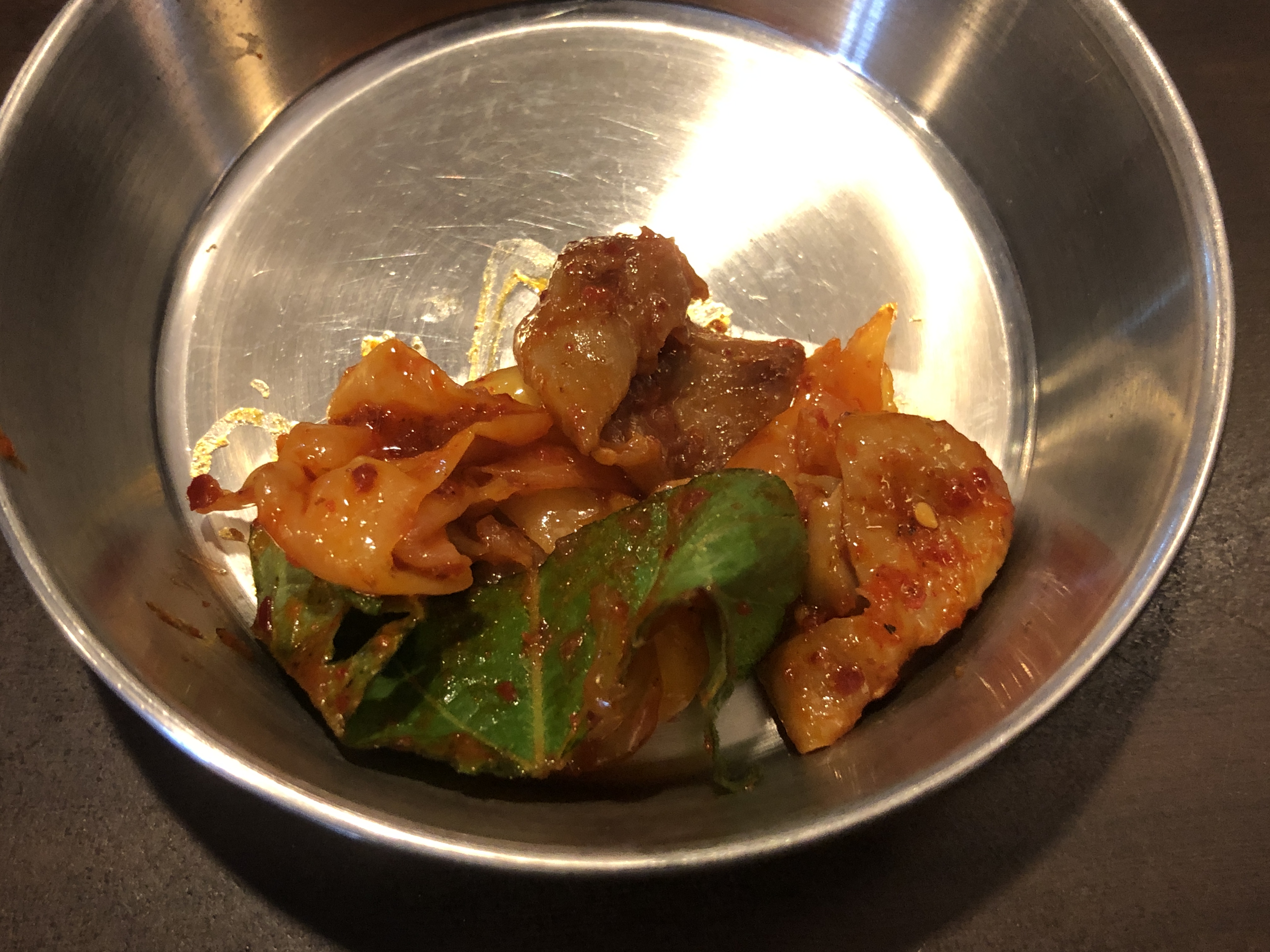 특이하게 밑반찬에 김이 있네요.