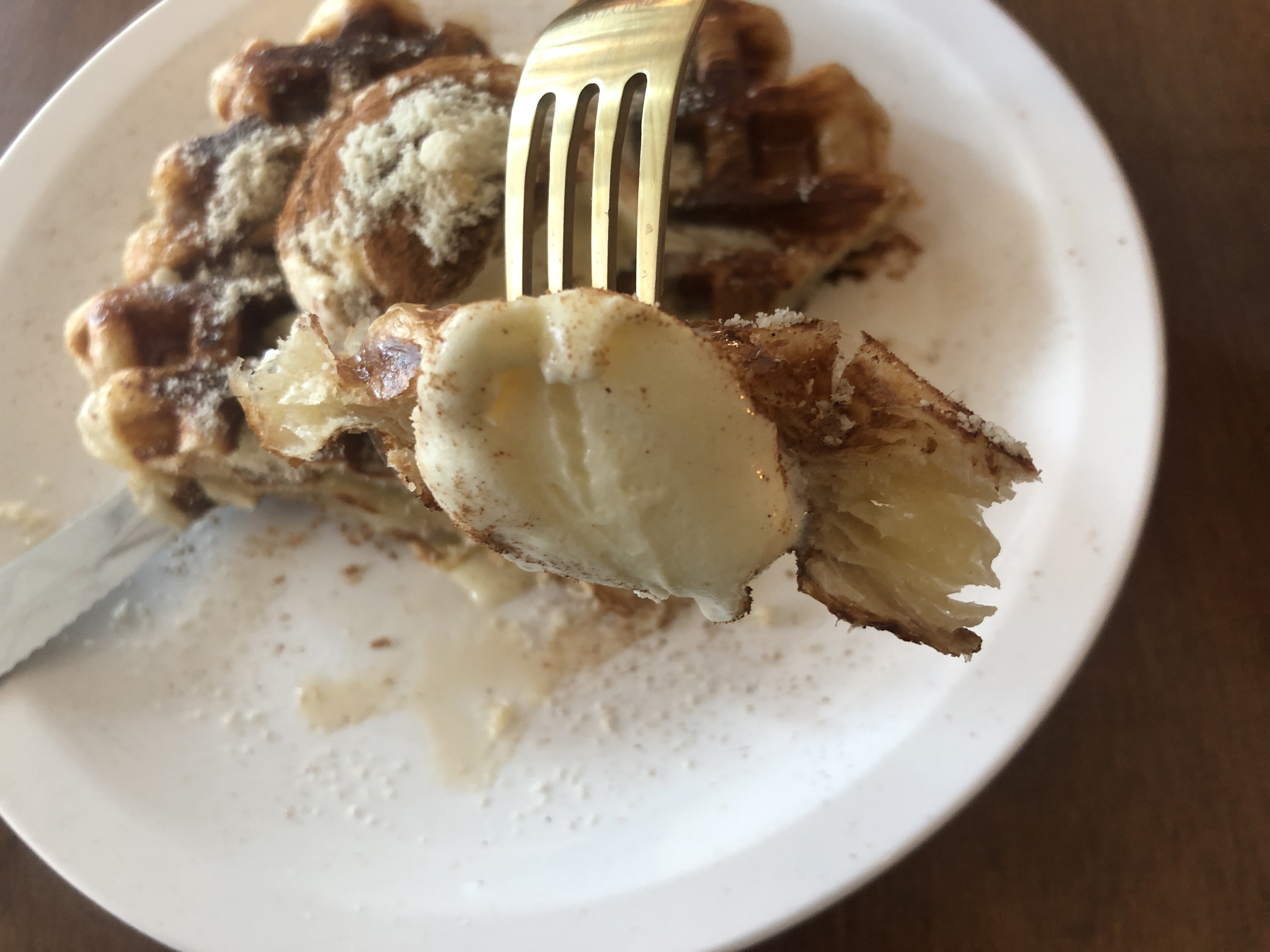 칼로 크로플을 잘라 단면을 보니