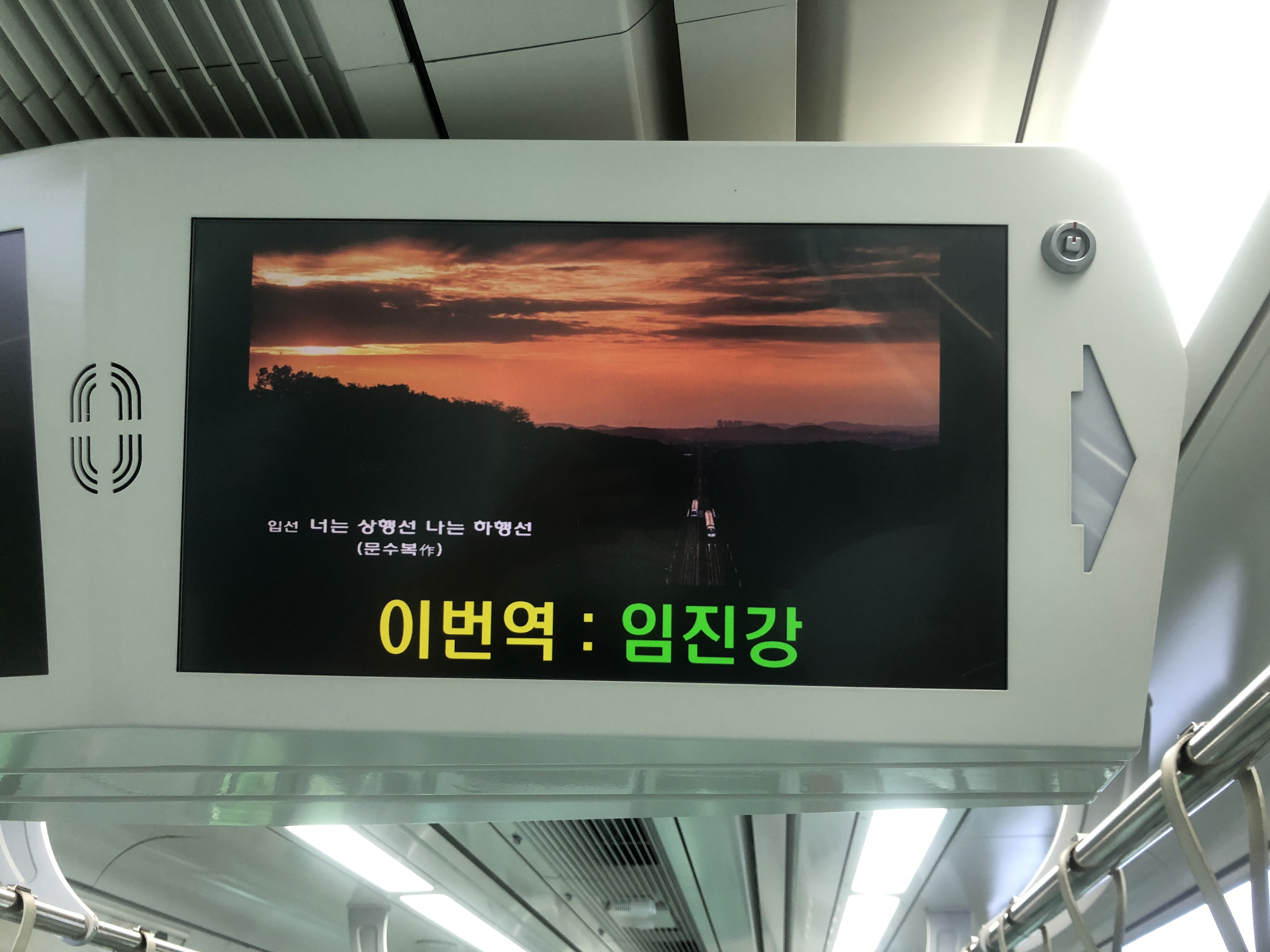 열차 안으로 들어오니 전광판에 이번역이 문산역이 아닌 문산기지로 나오는 등