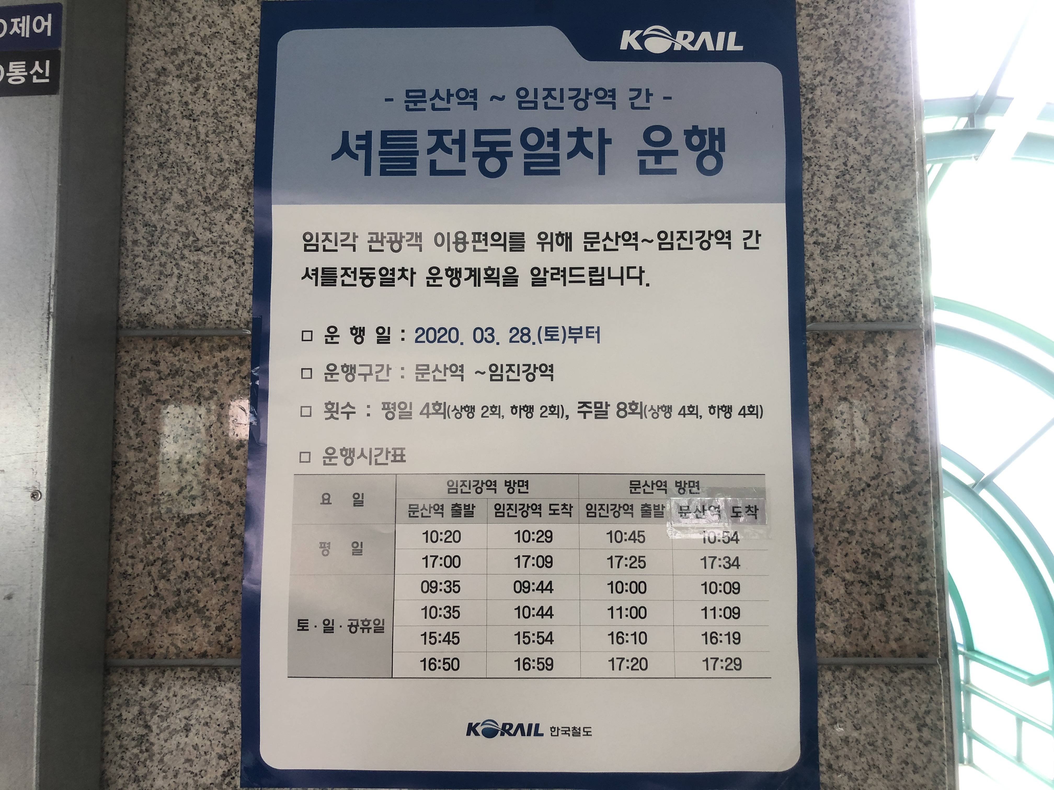 문산역에서 10시 35분에 출발하는 열차를 타고 10시 44분 임진강역에 내렸는데