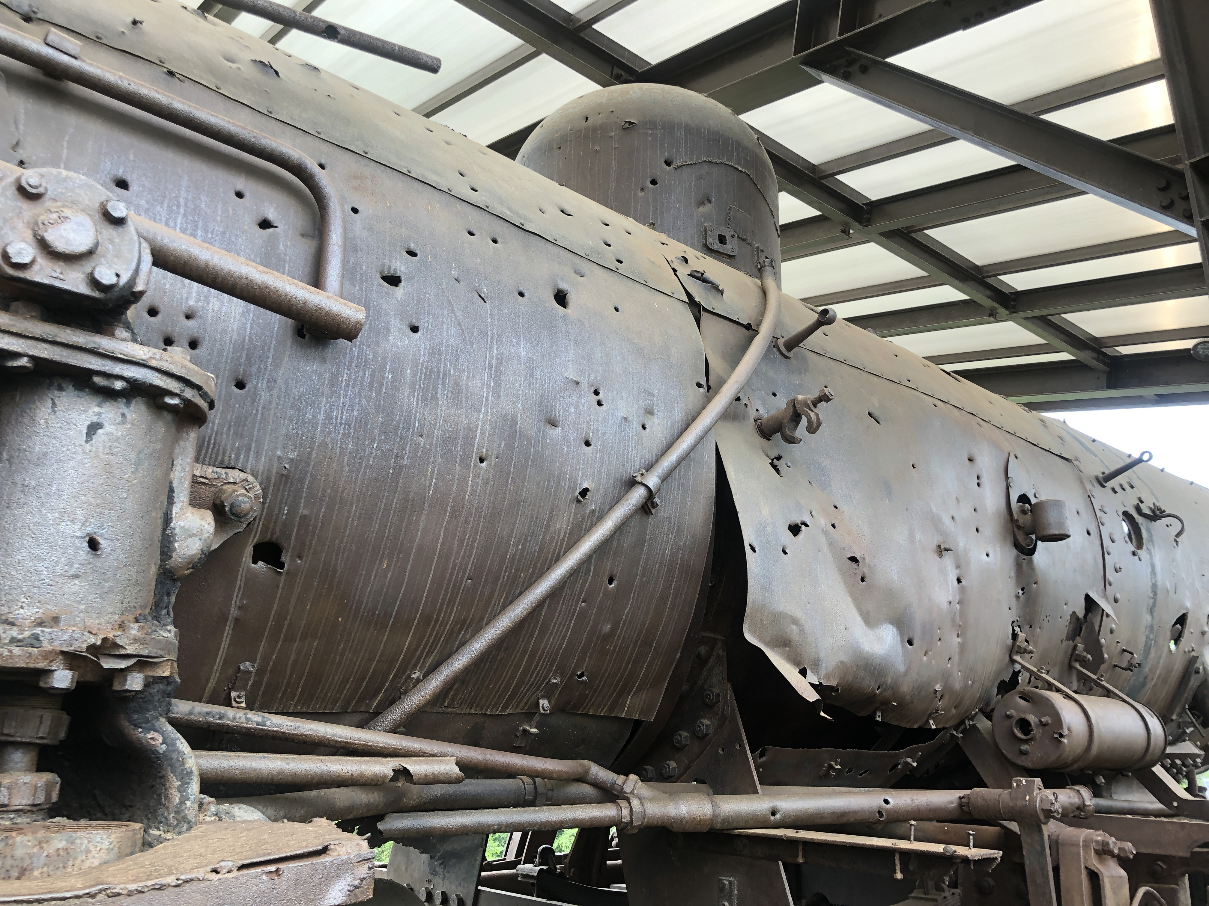 수천 발의 총탄을 맞으면서 박살난 증기기관차는