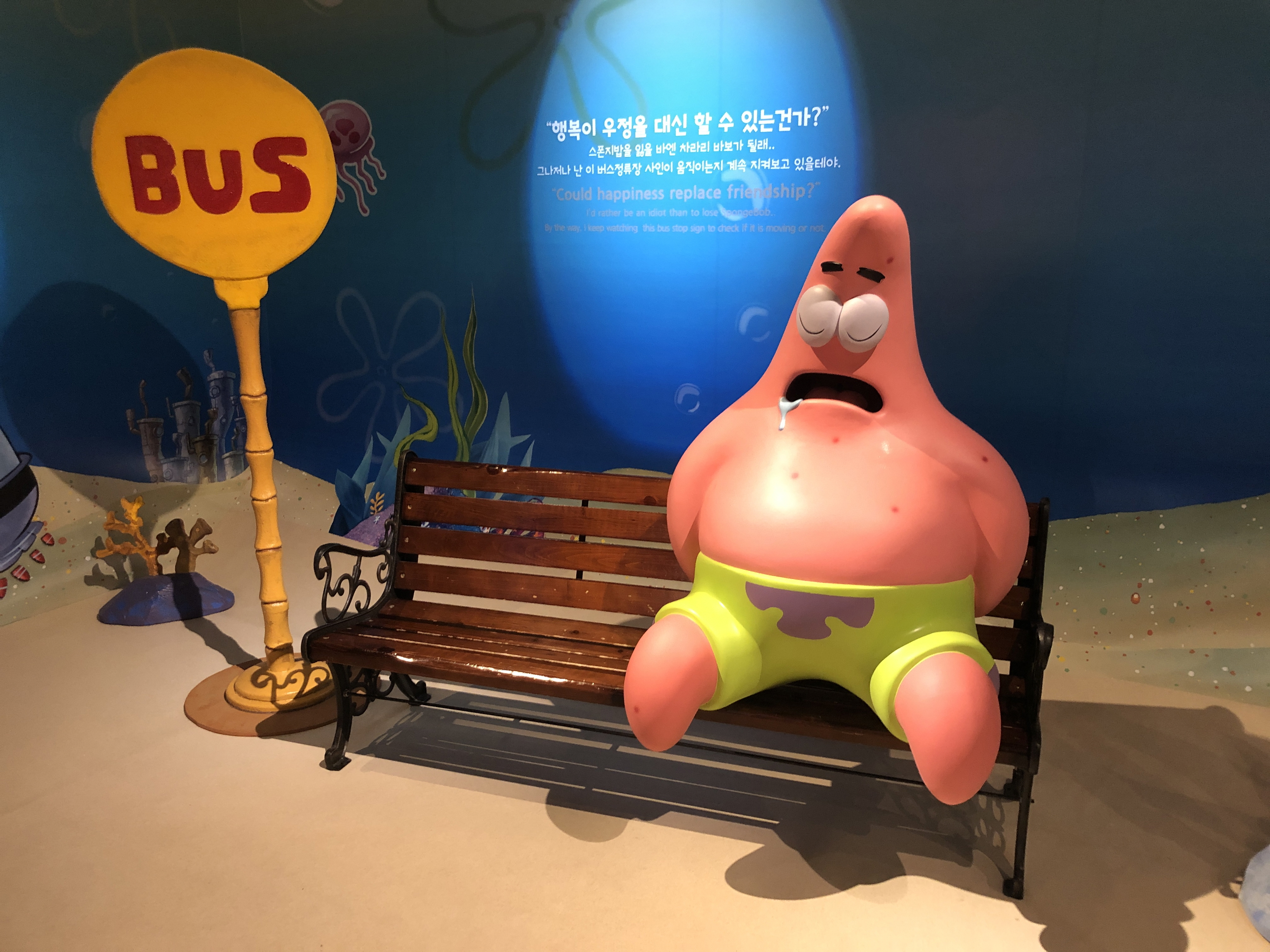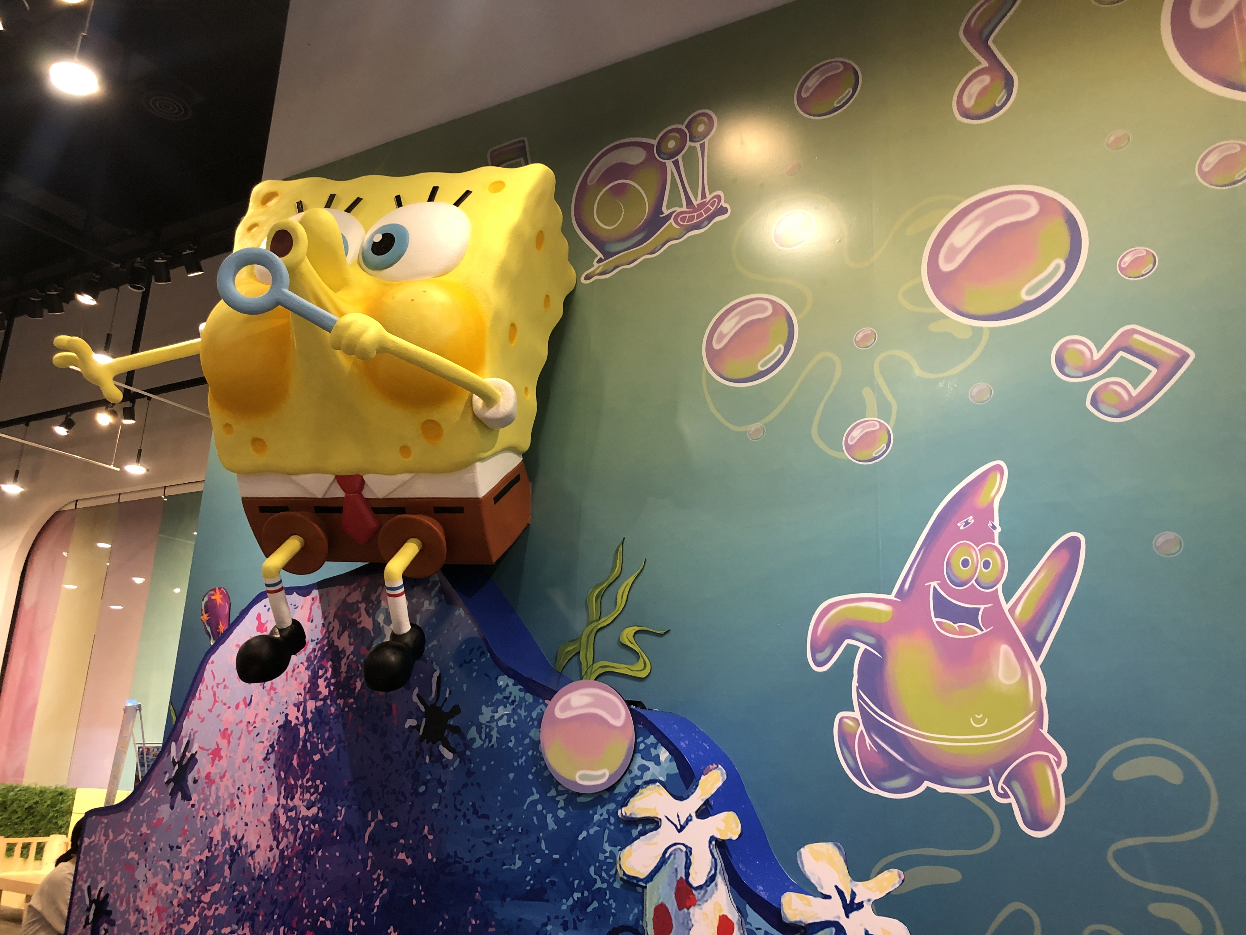 그 앞에서 비눗방울을 부는 스폰지밥을 만납니다.