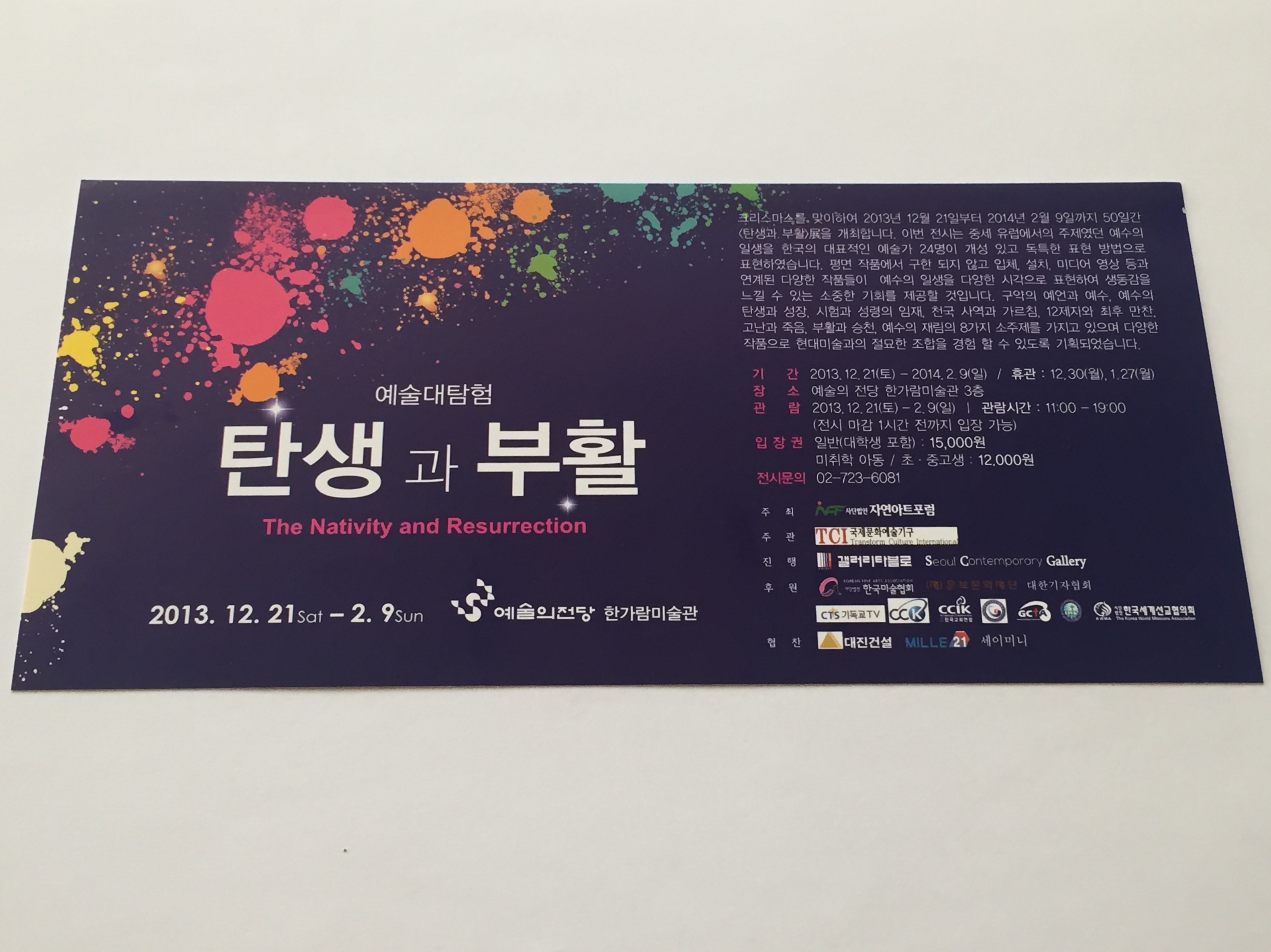 오래 전인 2013년 연말 크리스마스를 맞아 예술의전당 한가람미술관에서 탄생과 부활전이 열렸습니다.