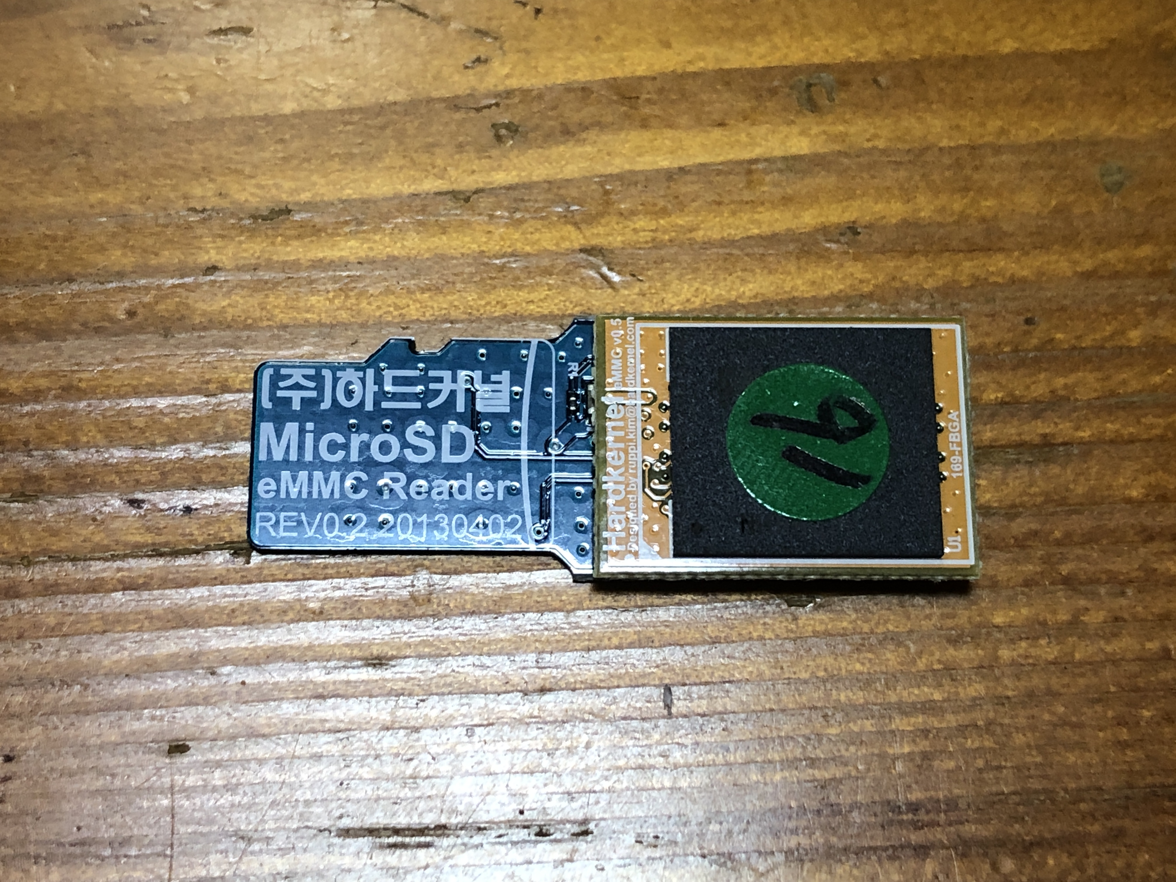 마이크로 SD카드 모양의 eMMC 리더기에 꽂았습니다.