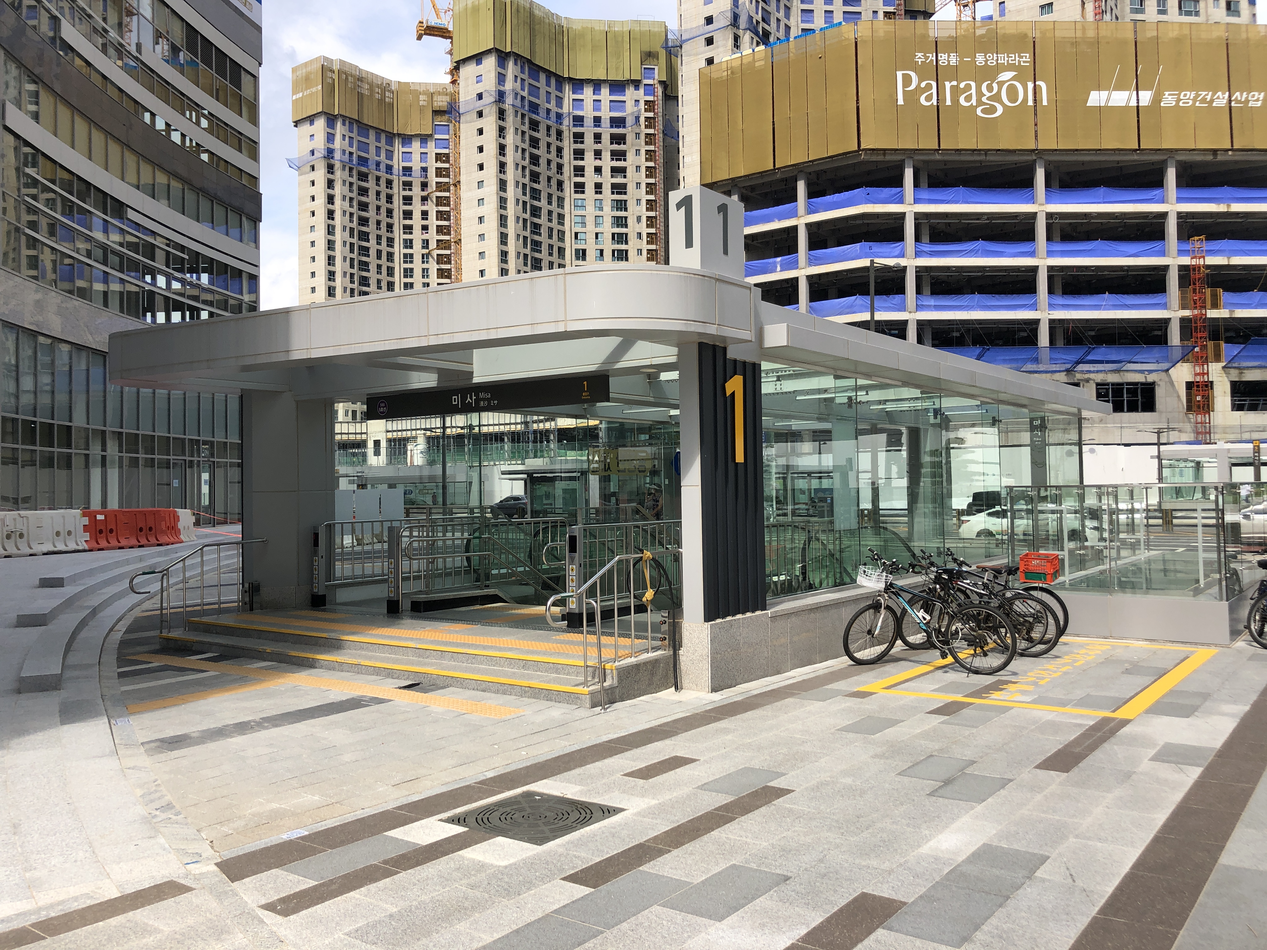 아직 공사 중인 아파트가 보이는 미사역에 내려