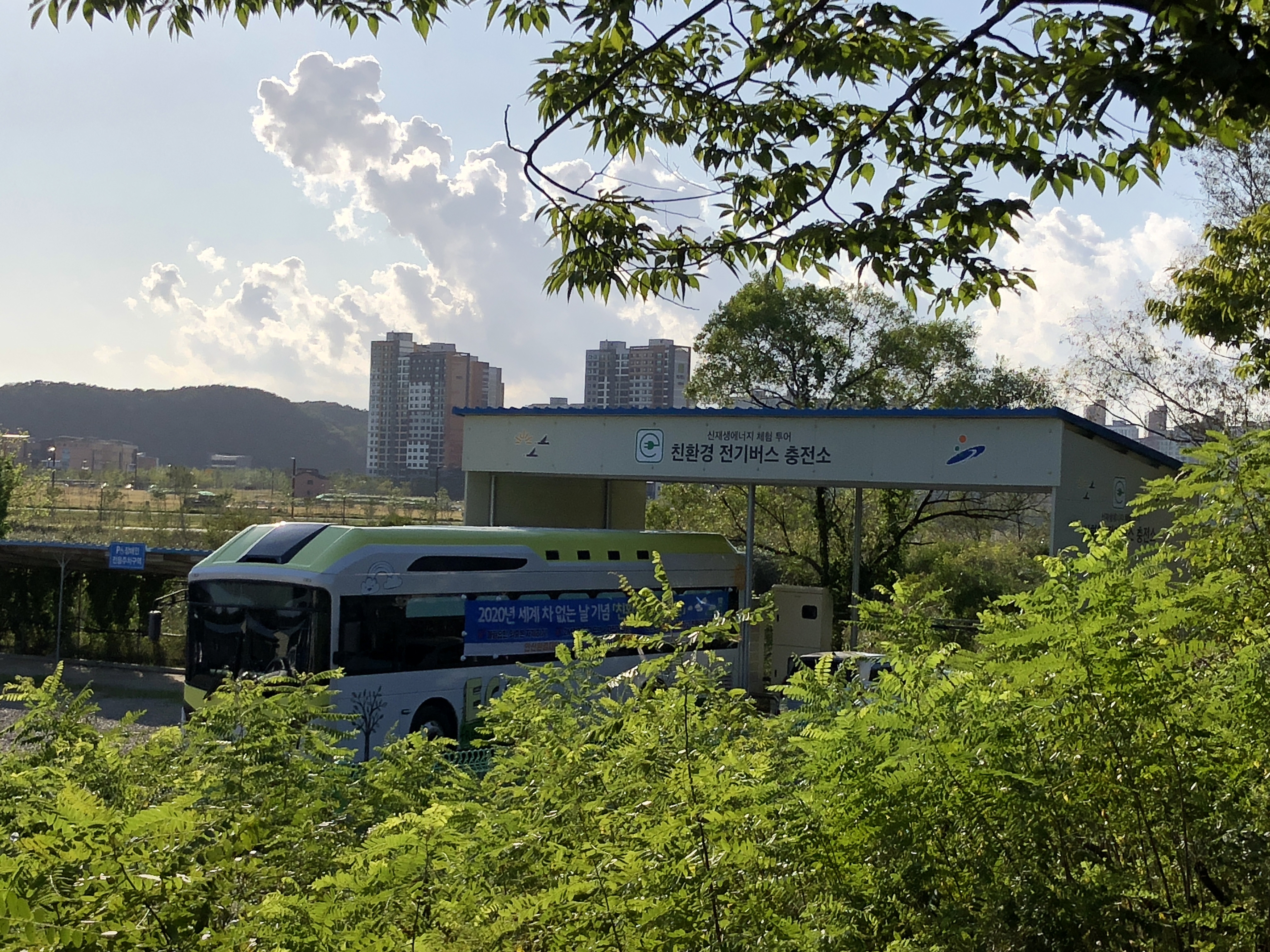 요즘 들어 많이 늘어난 전기버스를 보며 공원에서 나왔습니다.