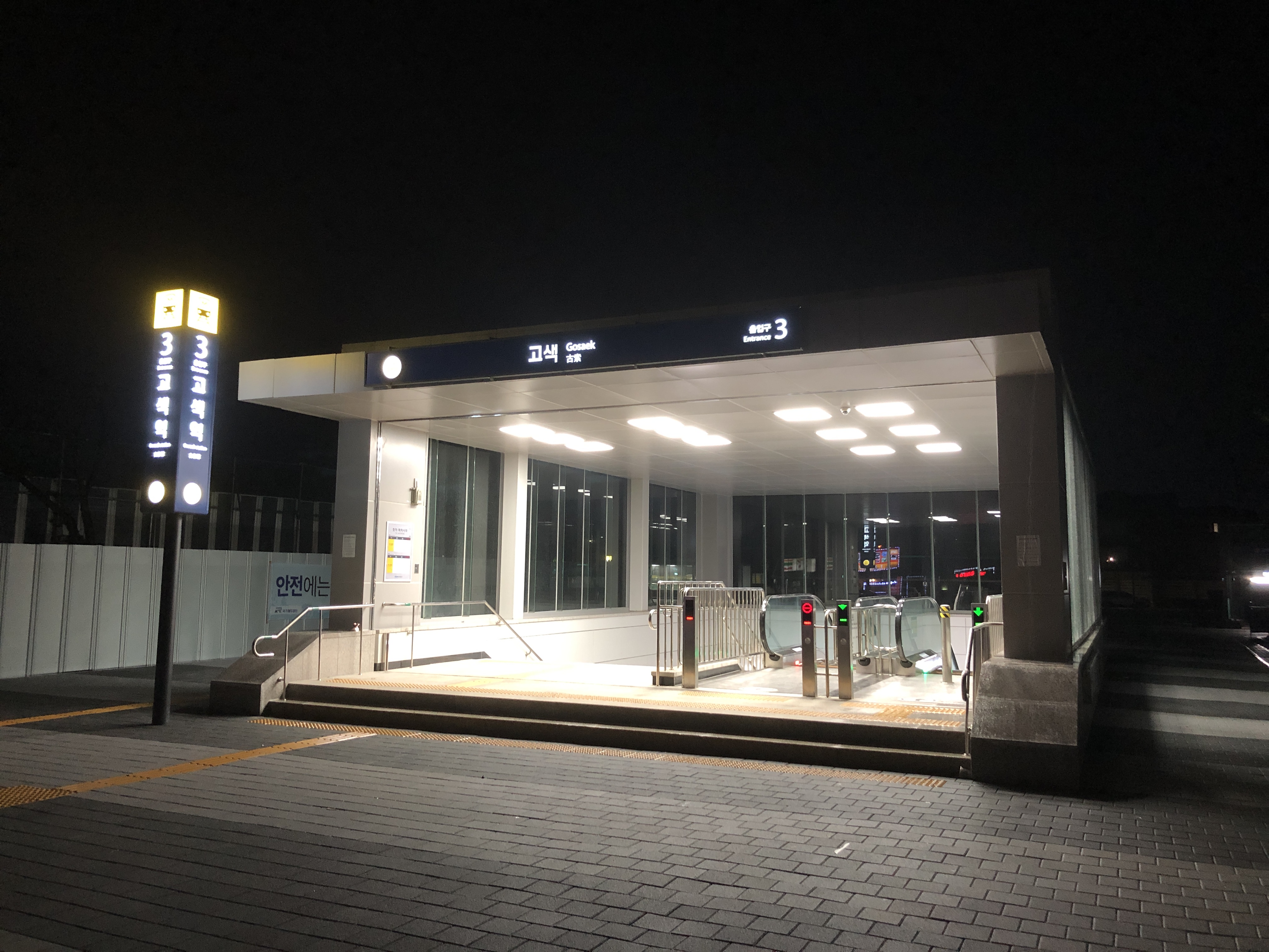 오목천역, 어천역, 야목역을 거쳐 6시 16분에 사리역에 도착했습니다.