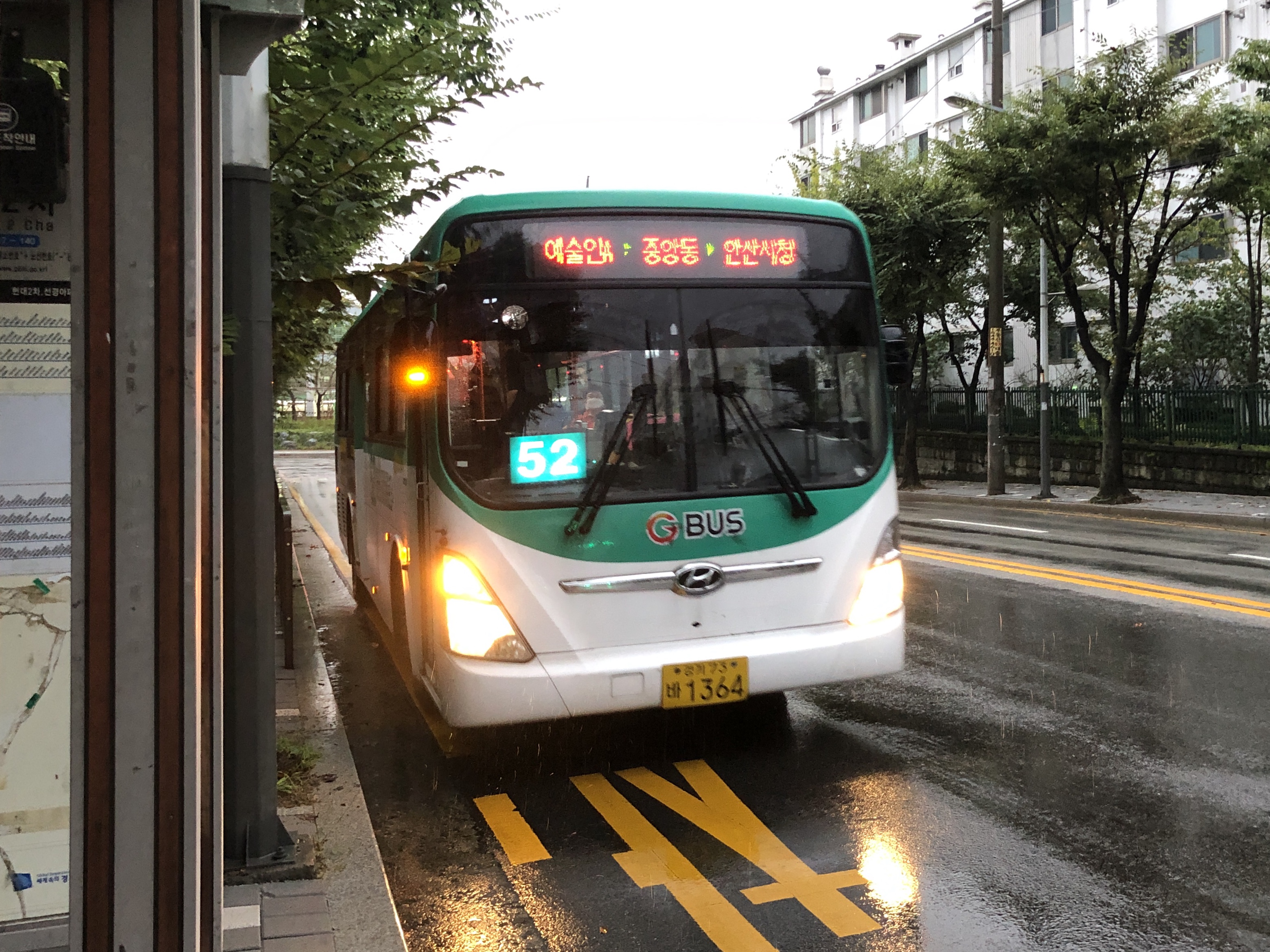지난번과 마찬가지로 사리역 길 건너 현대2차 버스 정류장에서 52번 버스를 타고