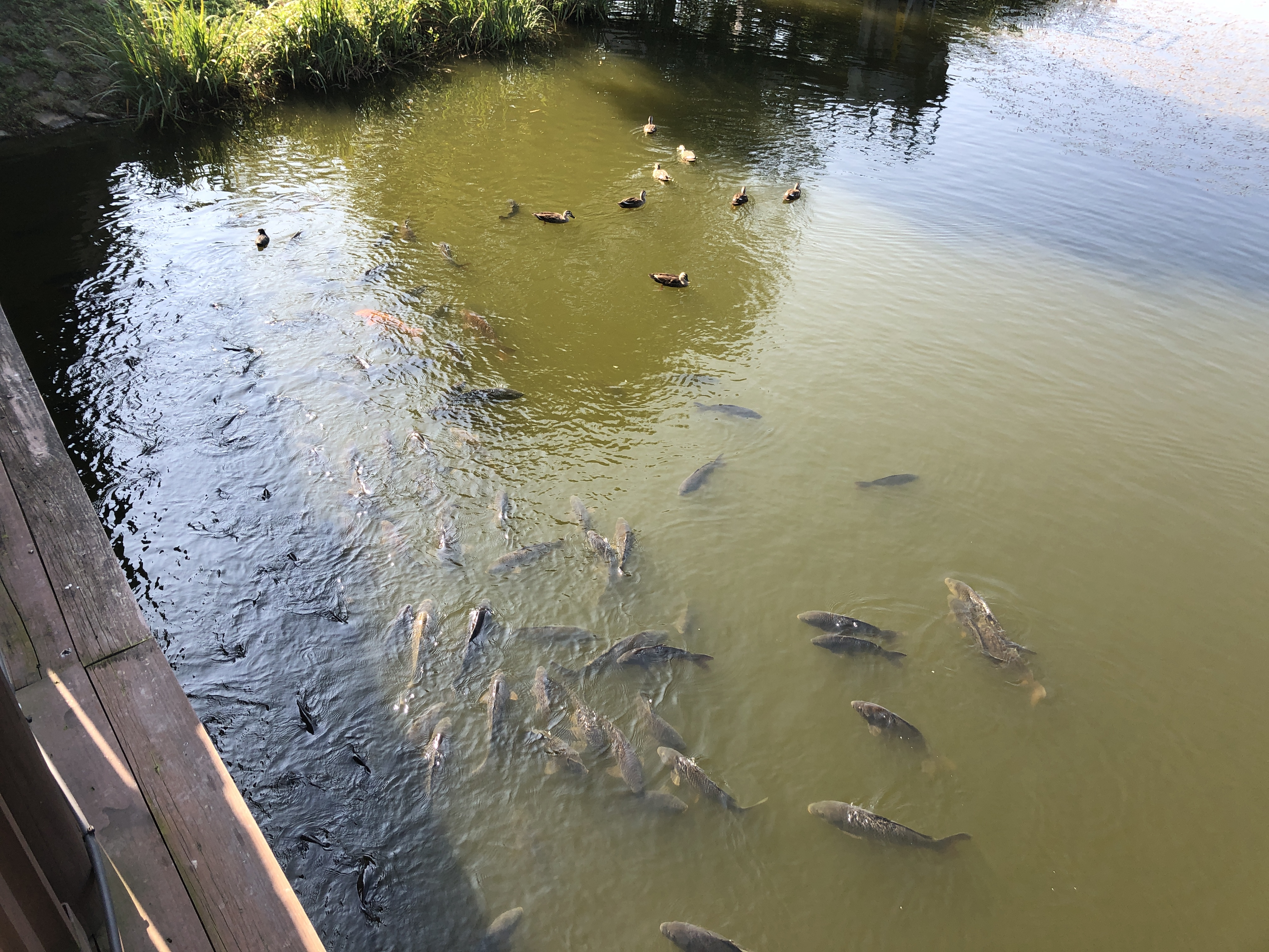그 아래서 유유히 헤엄치는 잉어들을 보고