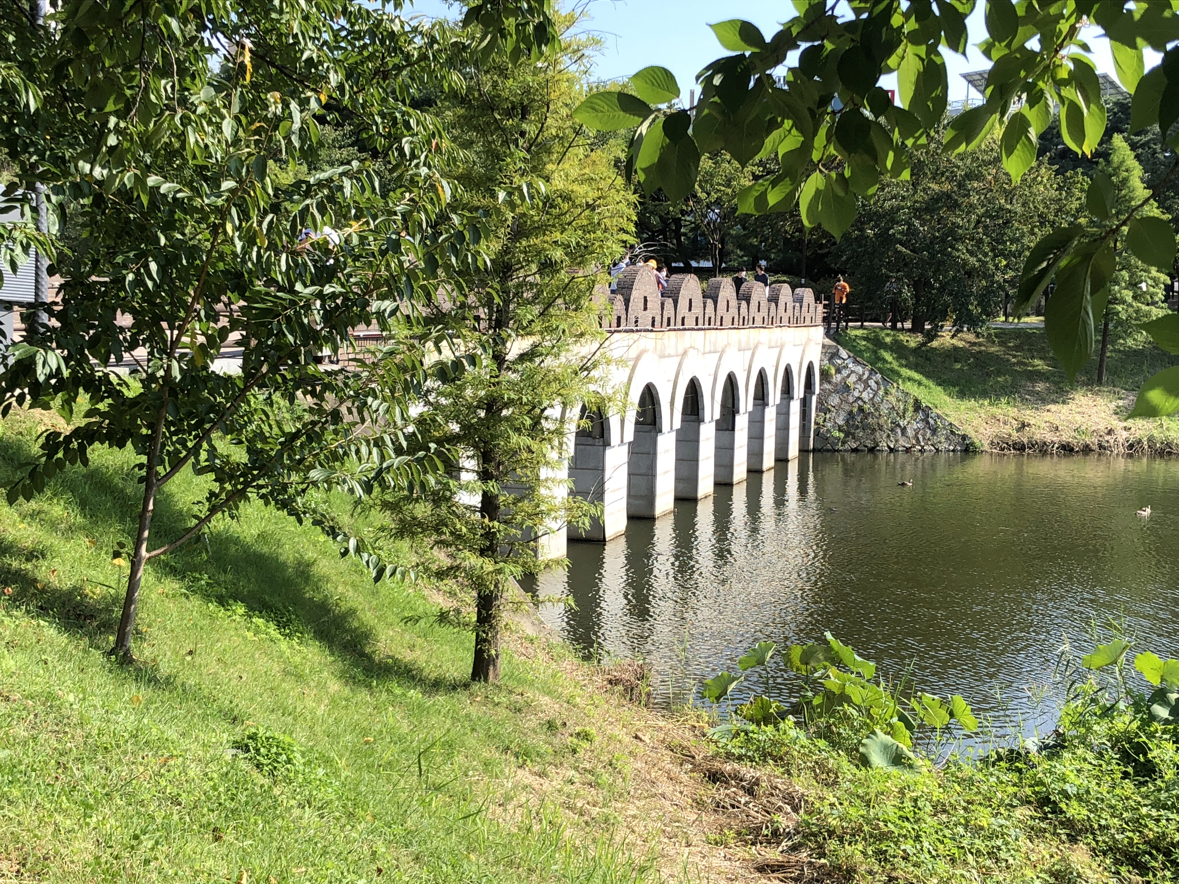 성곽을 본떠 만든듯한 다리를 건너며