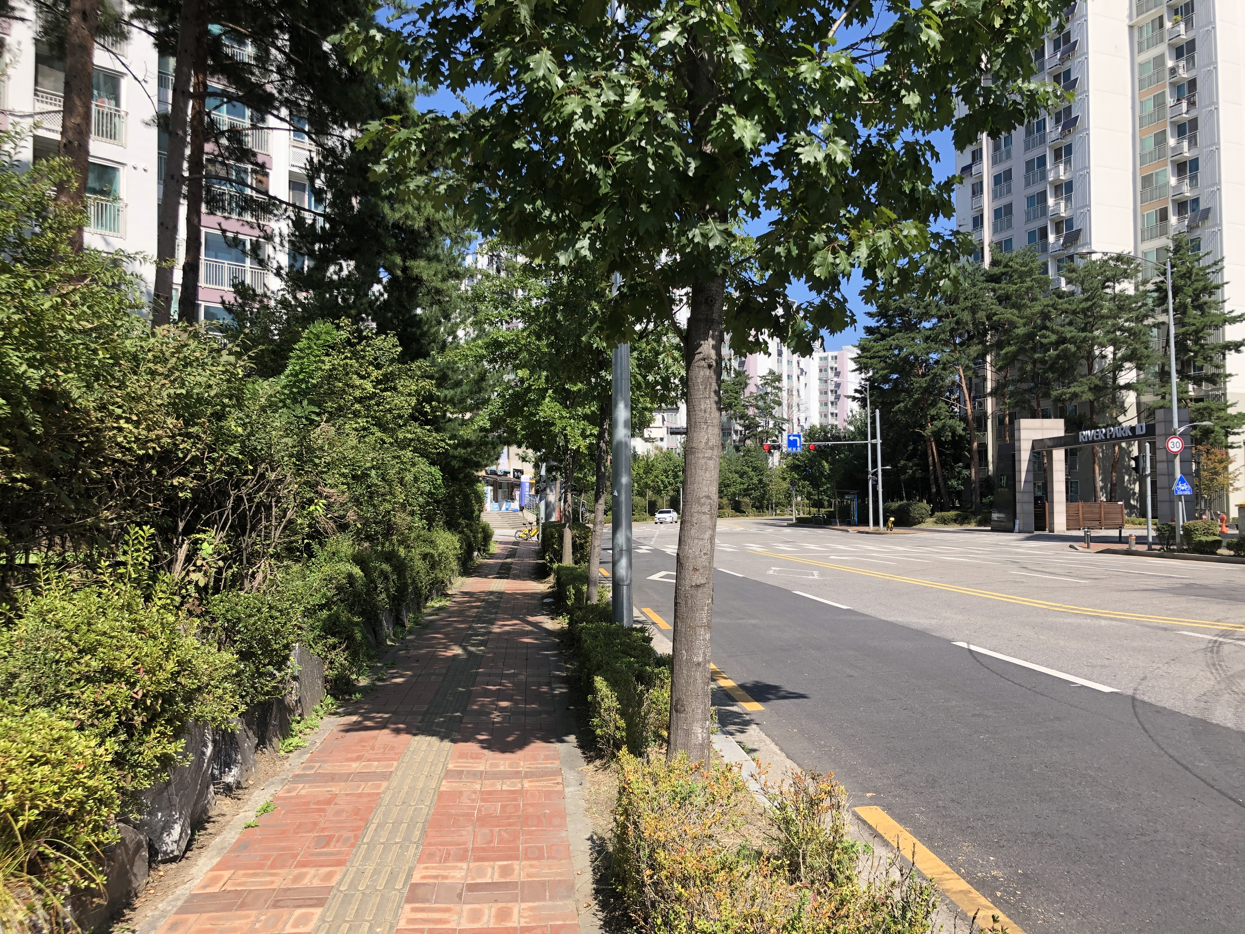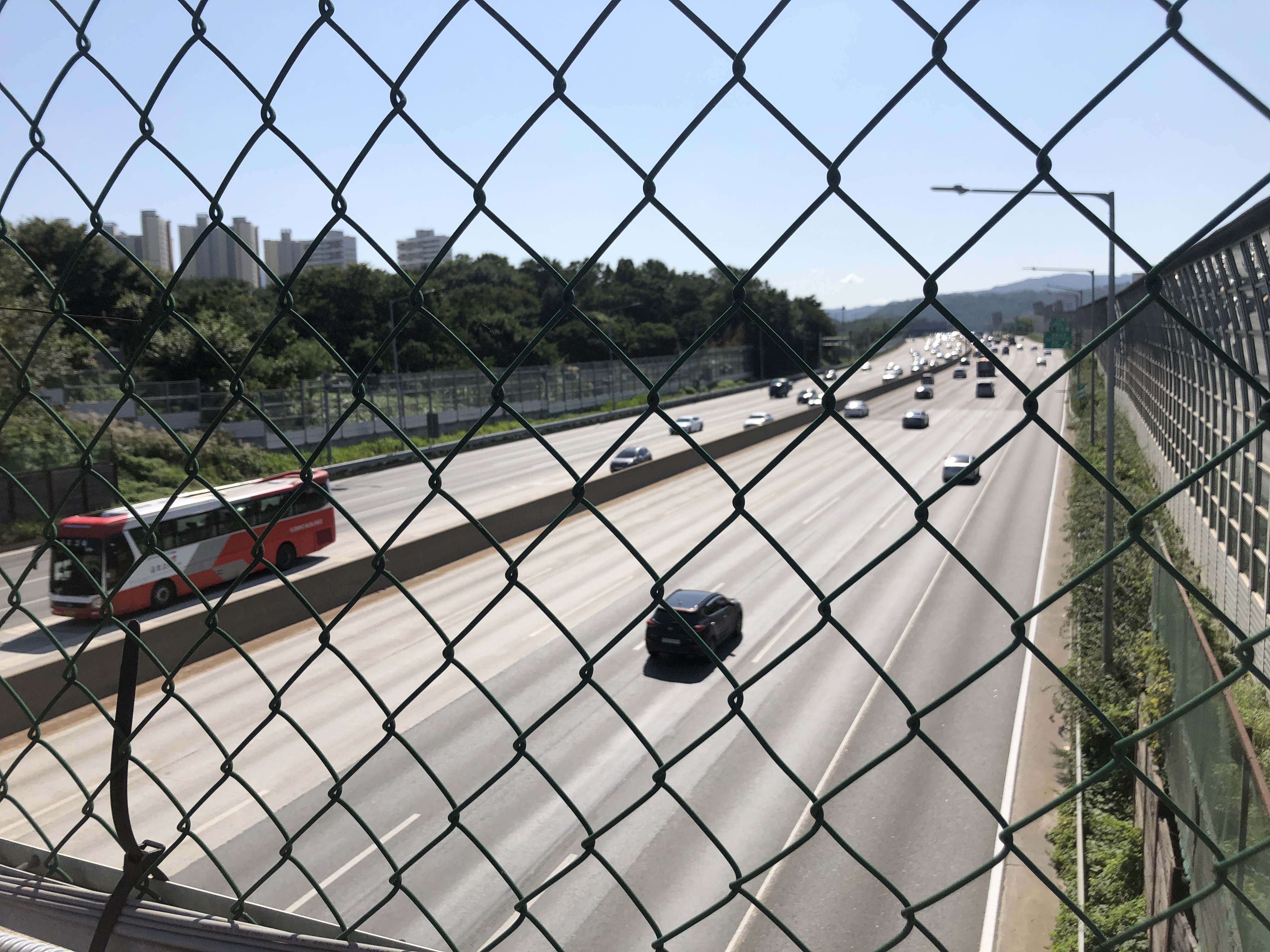 왕복 10차선 고속도로를 쌩쌩 달리는 차들이 내는 소음을 피해 아파트도 조금 떨어진 곳에 있으니