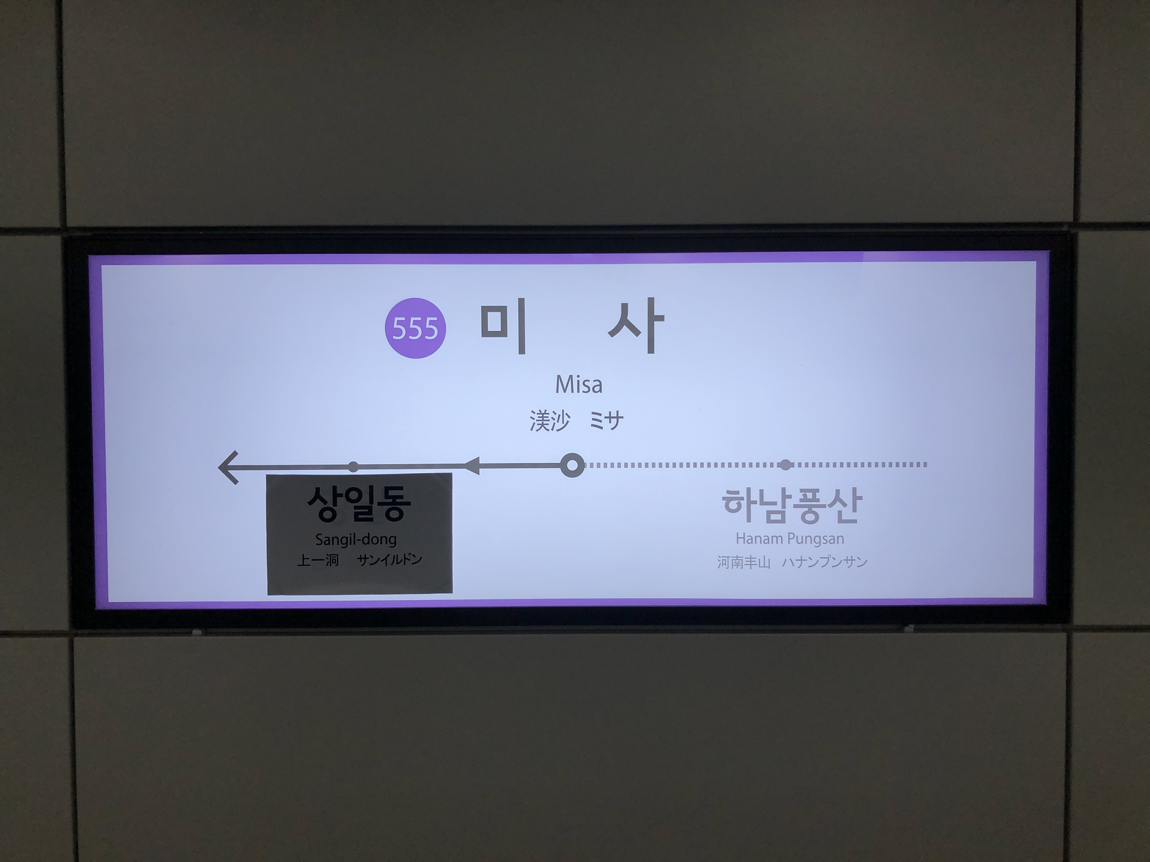 5호선 미사역 역명판을 보면 역명판 위를 종이로 가리고 상일동역을 표시하고 있는데요.