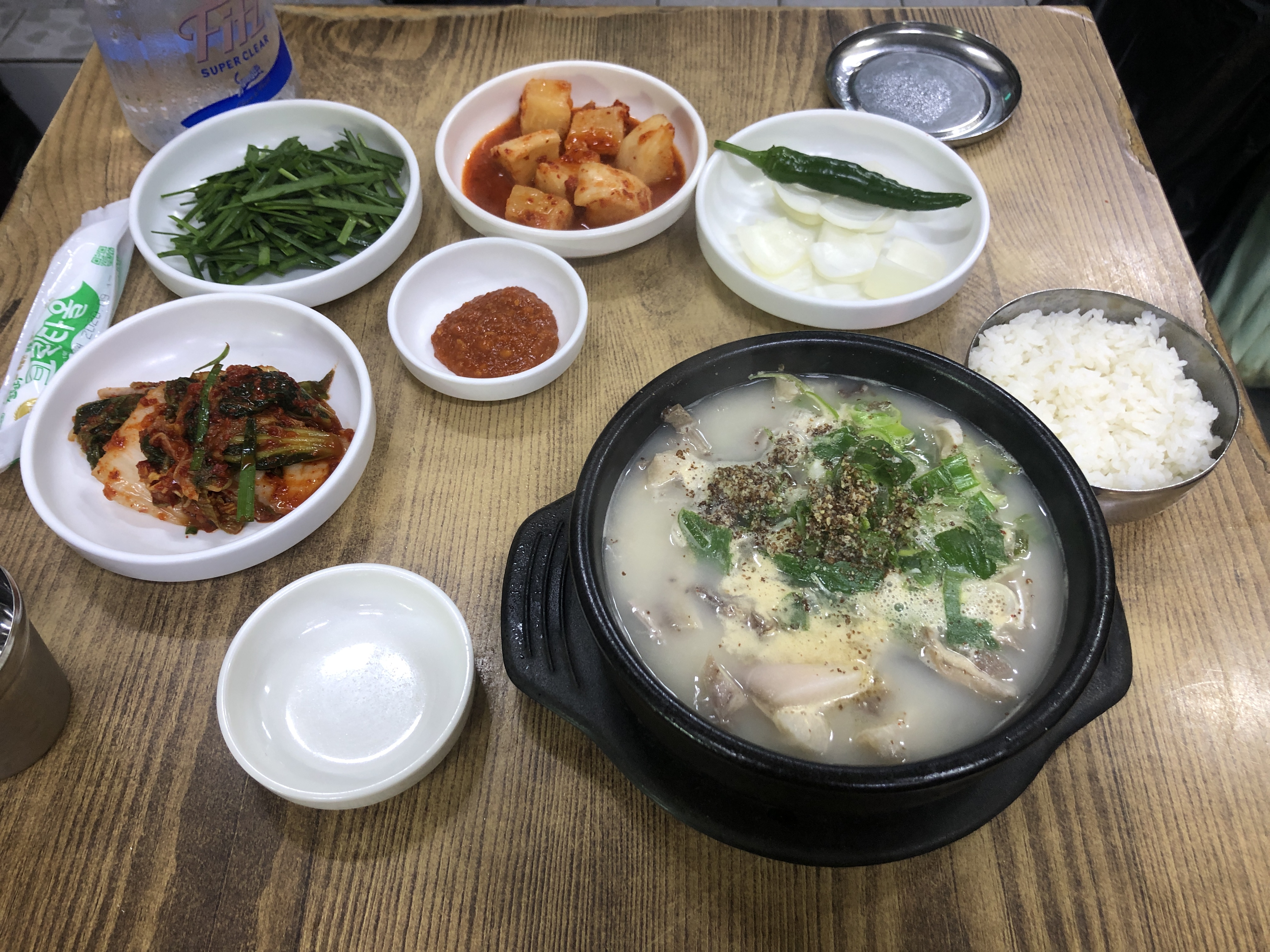 자리에 앉아 조금 기다리니 밑반찬과 함께 순댓국이 나왔습니다.