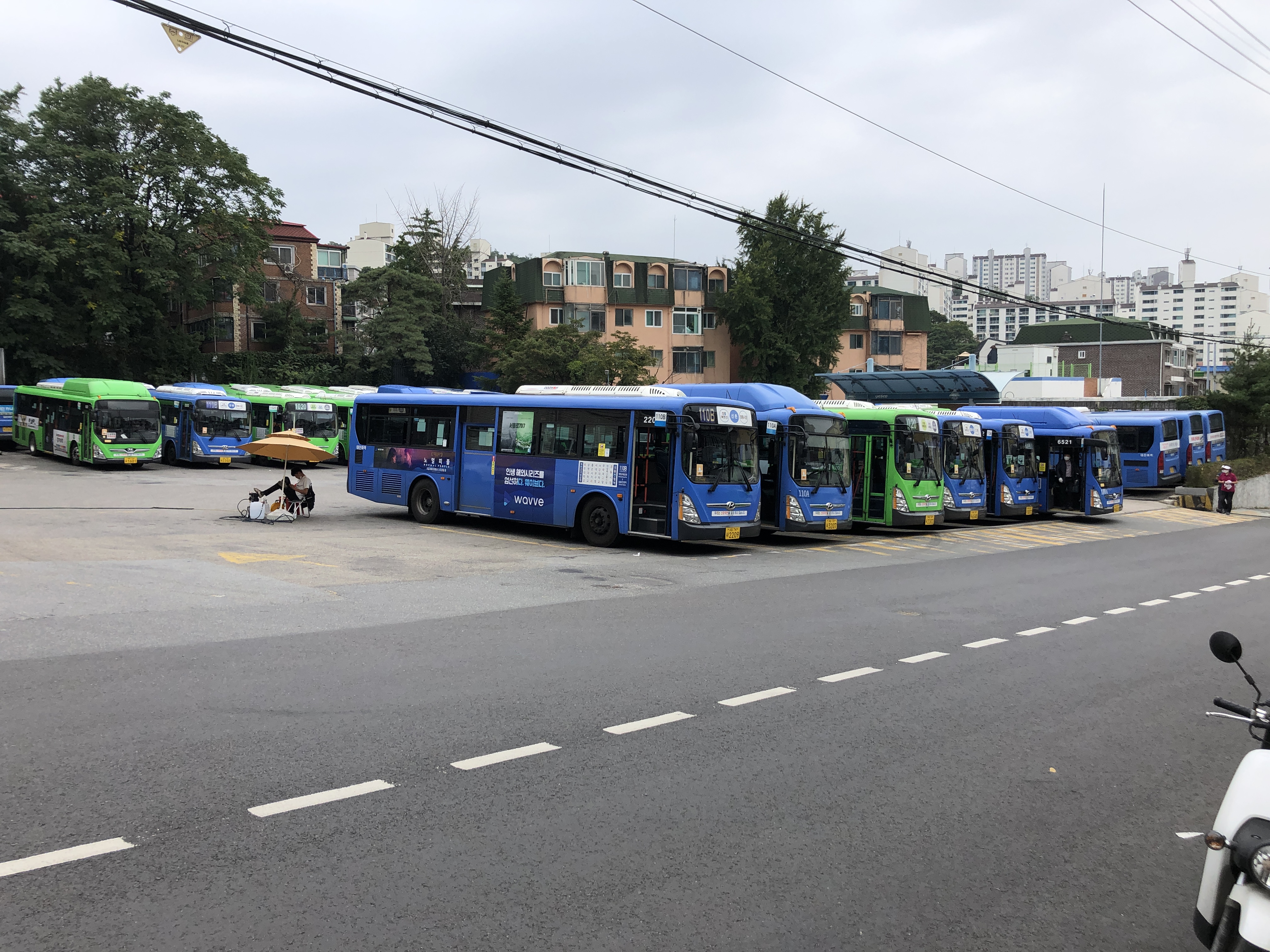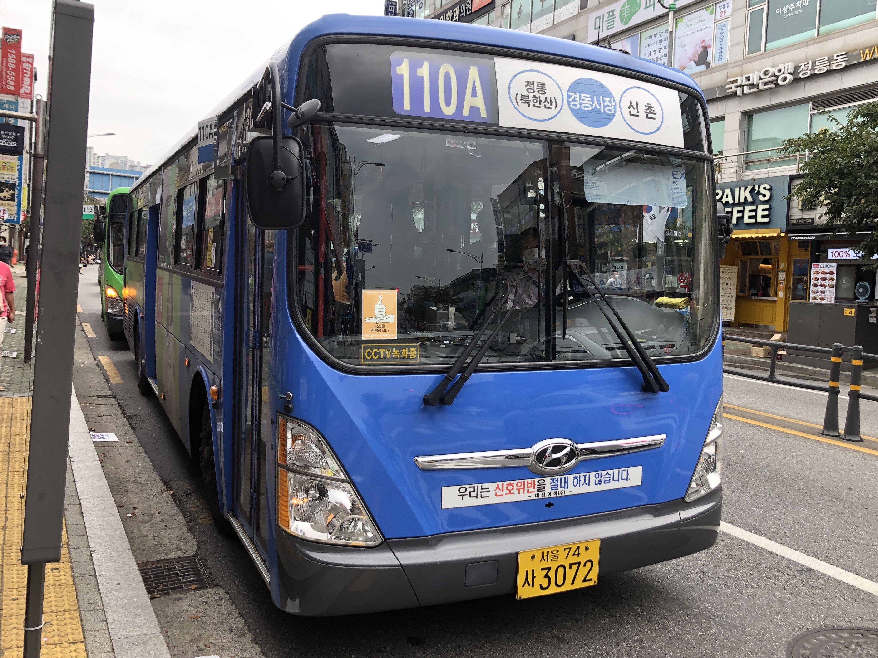 대진여객 차고지 건너편 버스 정류장에서 110A번 버스를 타고