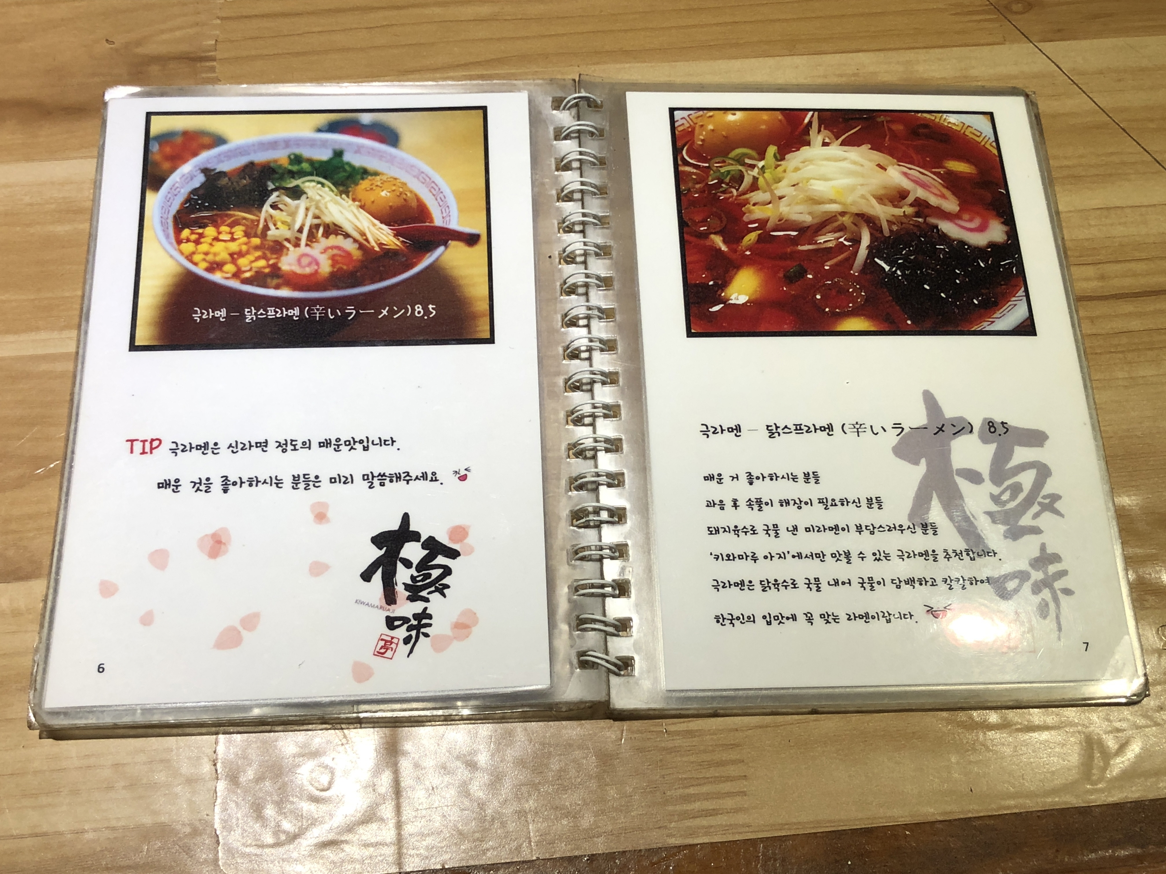 닭고기 육수를 베이스로 한 매운 라멘인 극라면을 주문했는데