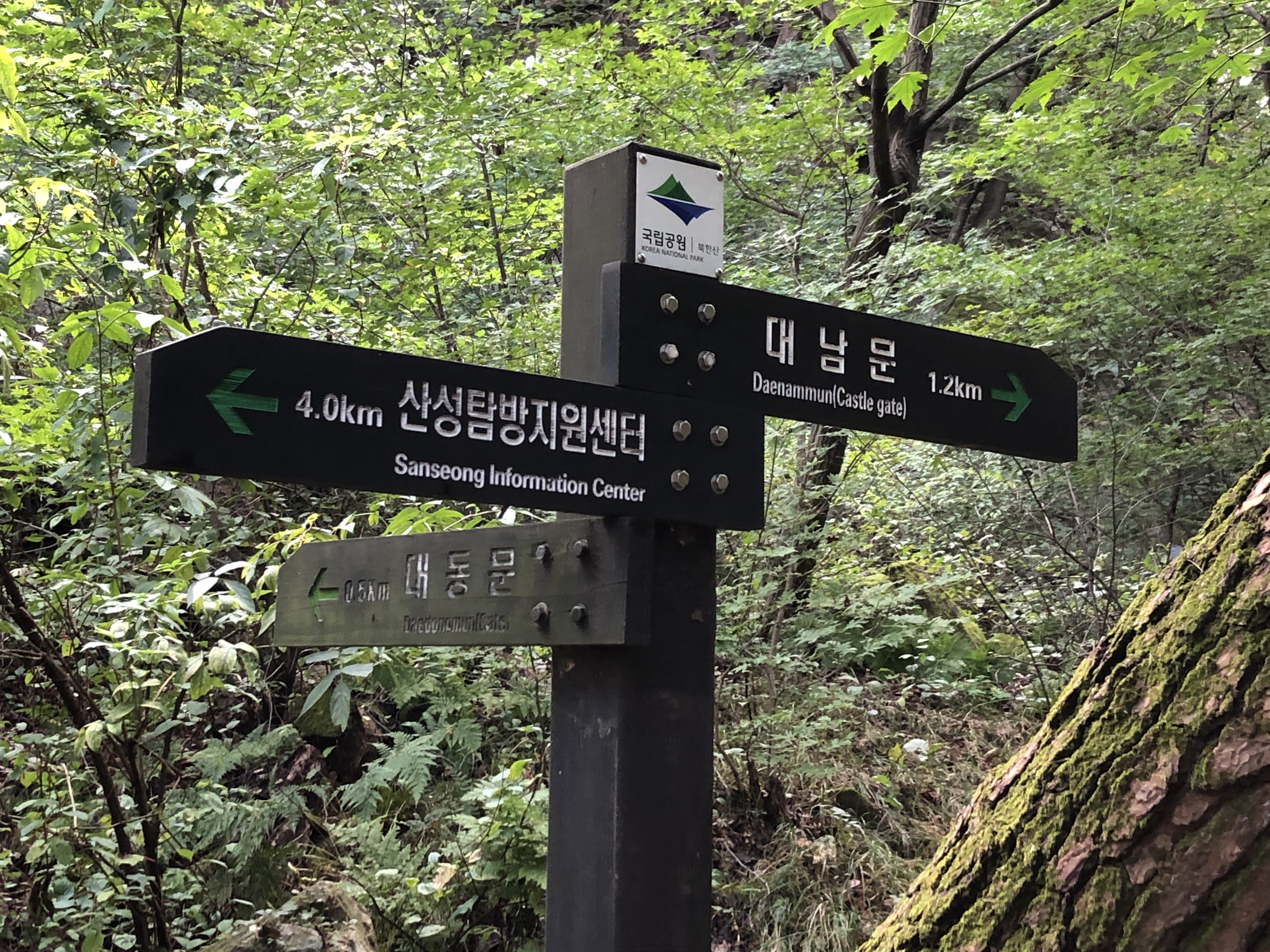 이 갈림길에서 드디어 대남문을 향해 동쪽이 아닌 남쪽으로 걸어갑니다.