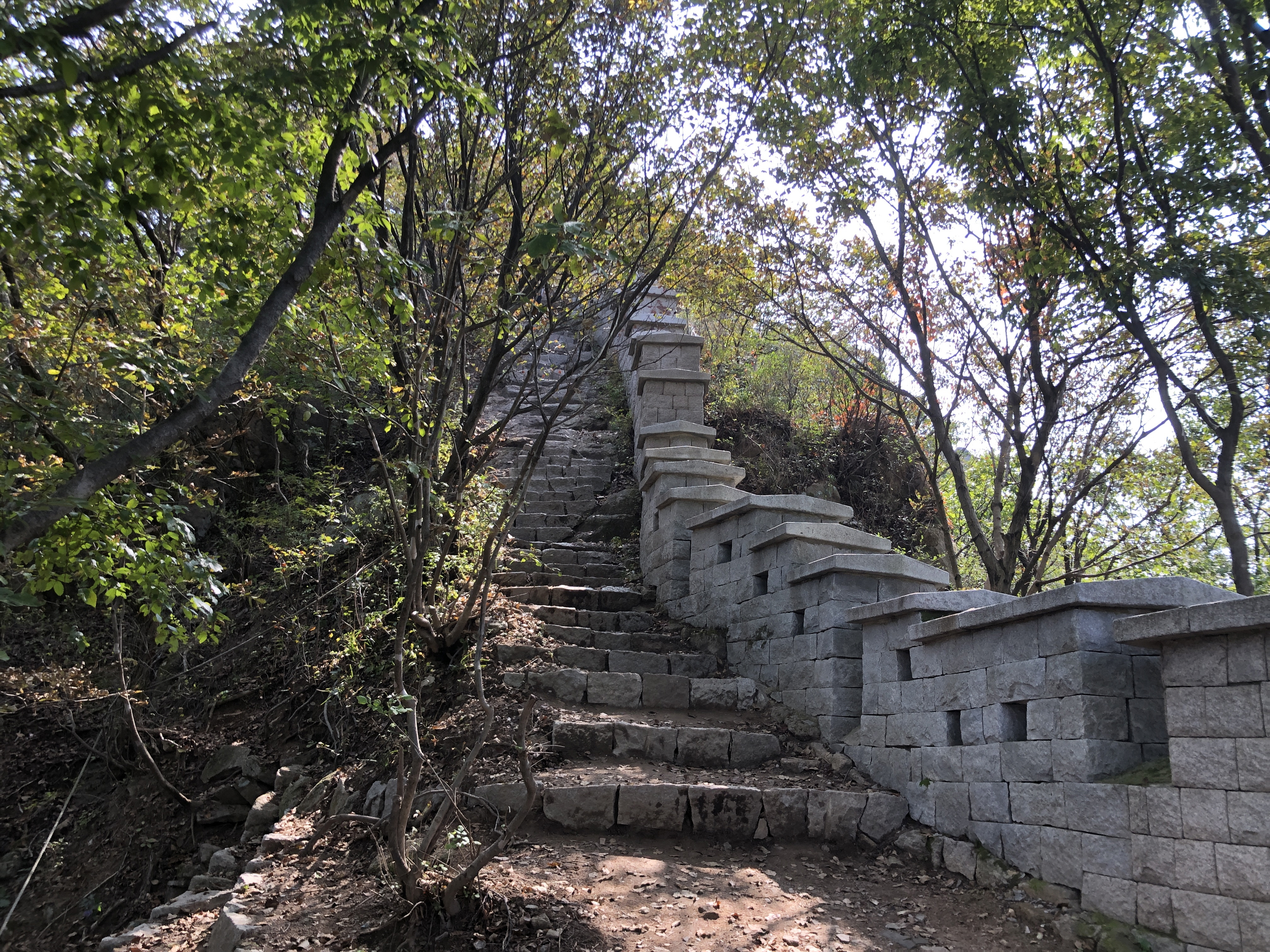 다리에 힘이 쭉 빠져서 끝이 안 보이는 저 계단을 따라 성곽길을 걸어갈 자신이 없네요.