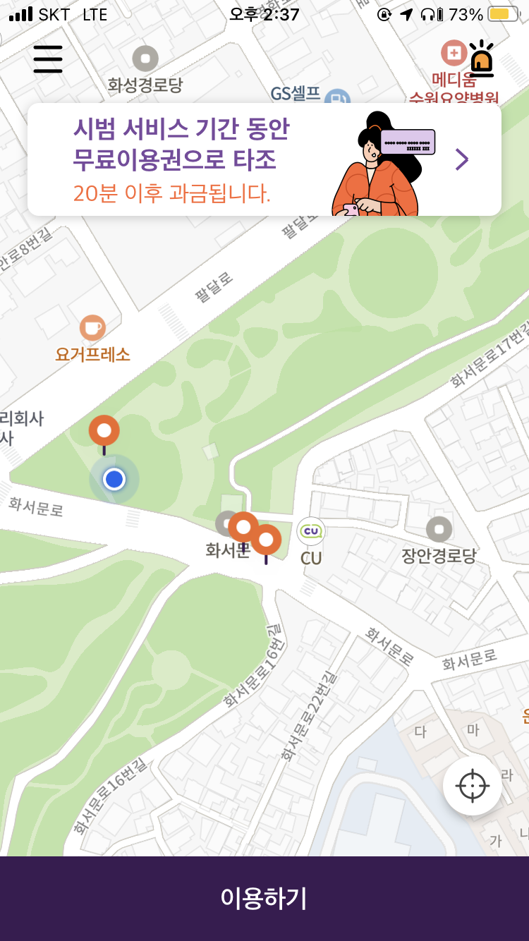 전용 스테이션을 설치하지 않고 어디서든 대여와 반납을 자유롭게 할 수 있다는 점에서 상당히 편리했습니다.