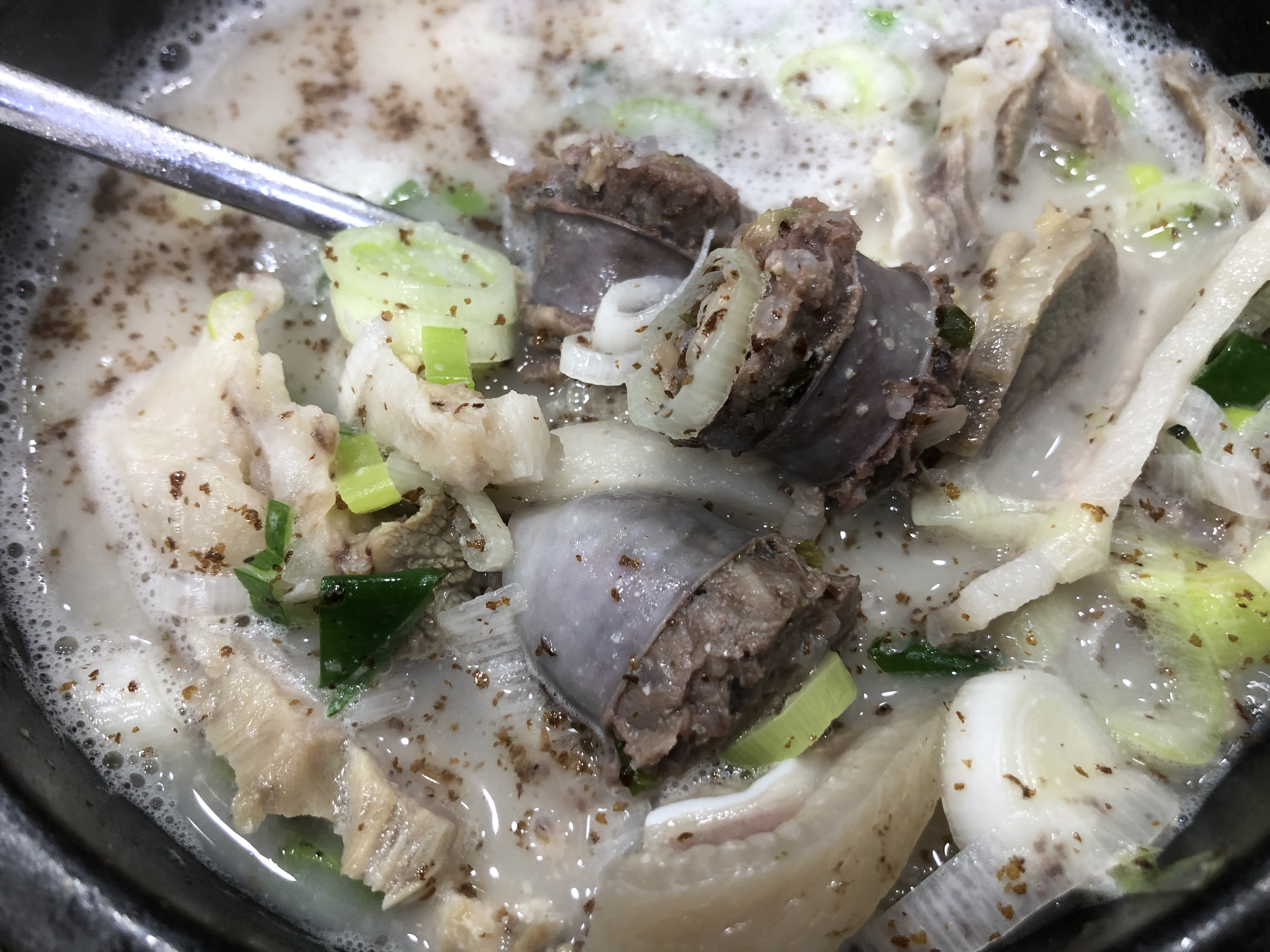 국을 충분히 식히고 휘휘 저어보니 순댓국과 딱히 건더기가 다를게 없습니다.