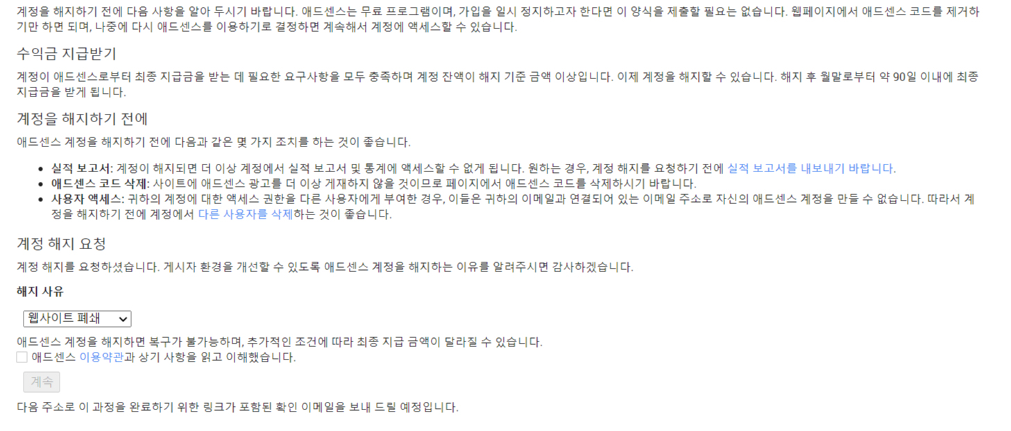 저처럼 누군가는 구글 애드센스 계정을 해지해야 할 일이 생길 겁니다.
