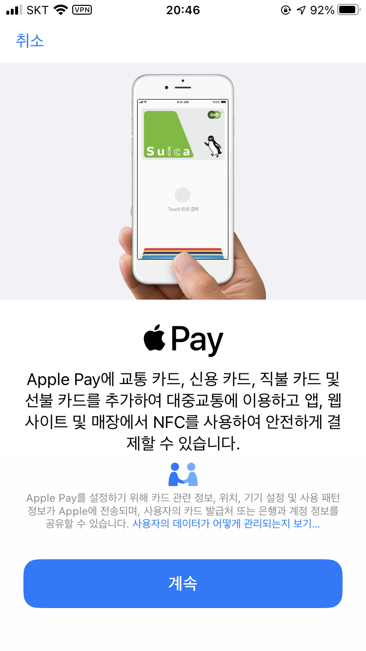 어쨌든 애플페이에 카드를 넣는 데에 성공했습니다.