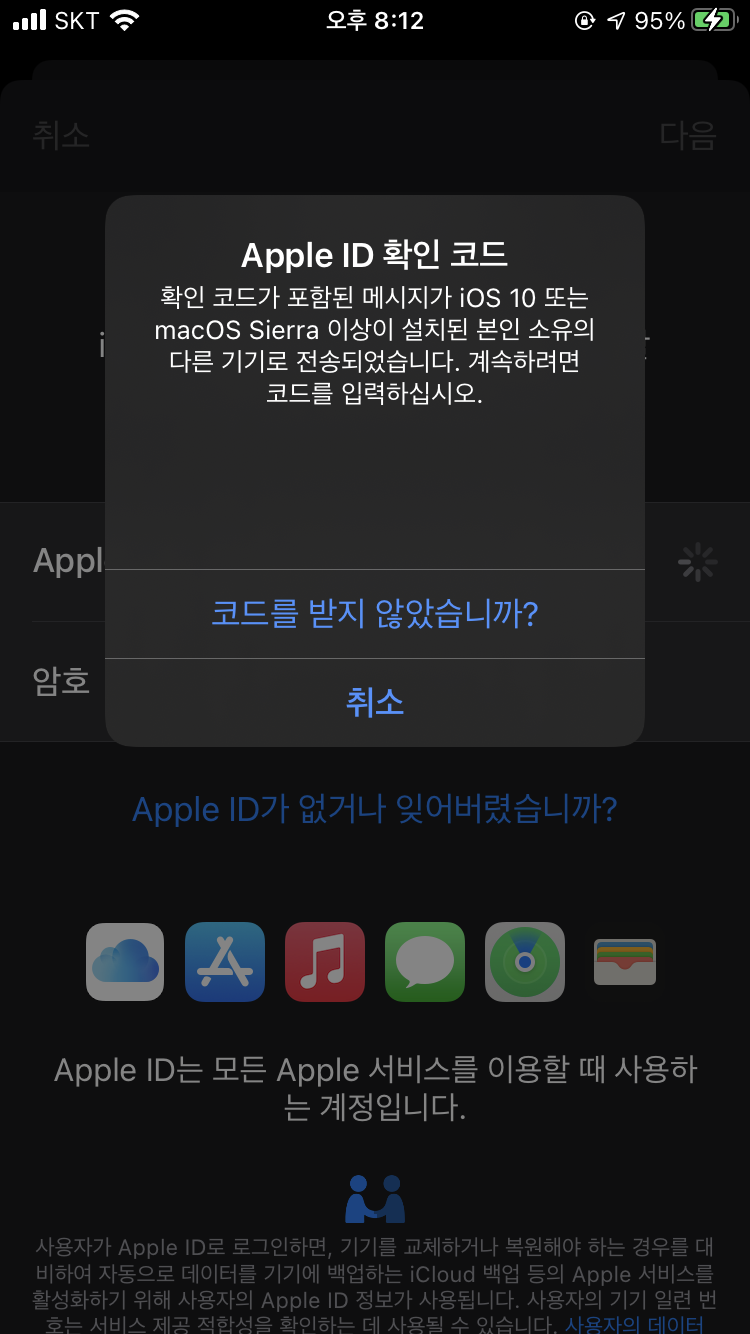 이 과정의 가장 큰 난관인 SMS 인증을 통과해야 합니다.