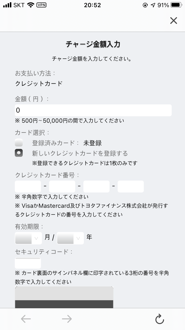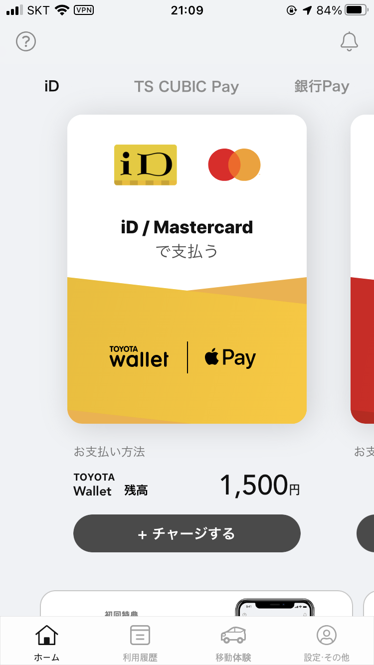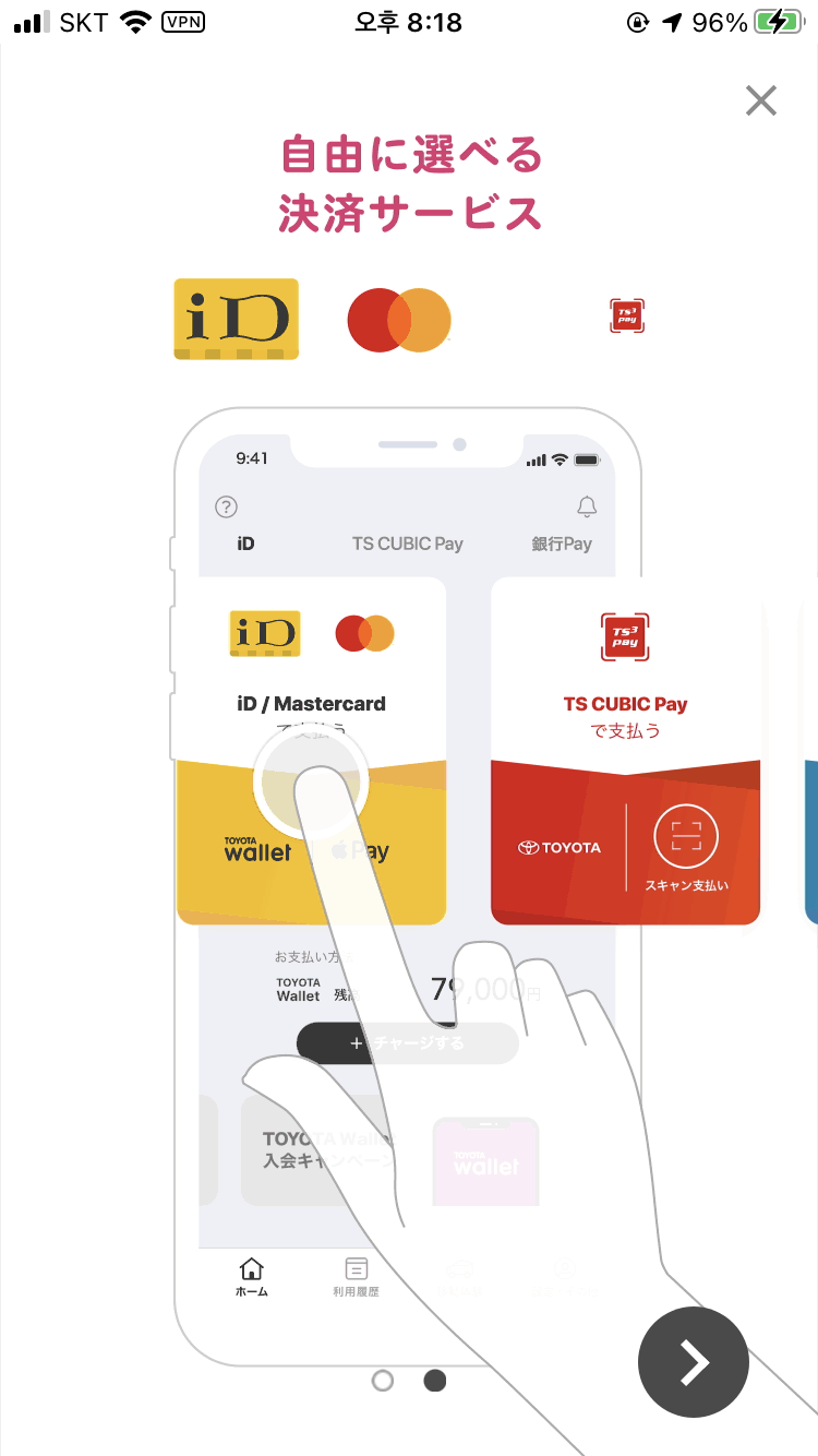 그러면 이제 토요타 월렛 카드에 잔액을 충전해보겠습니다.