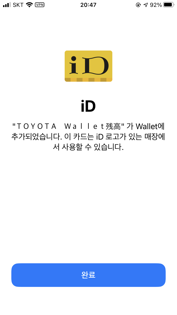 모처럼 애플페이에 토요타 월렛 카드를 넣었으니