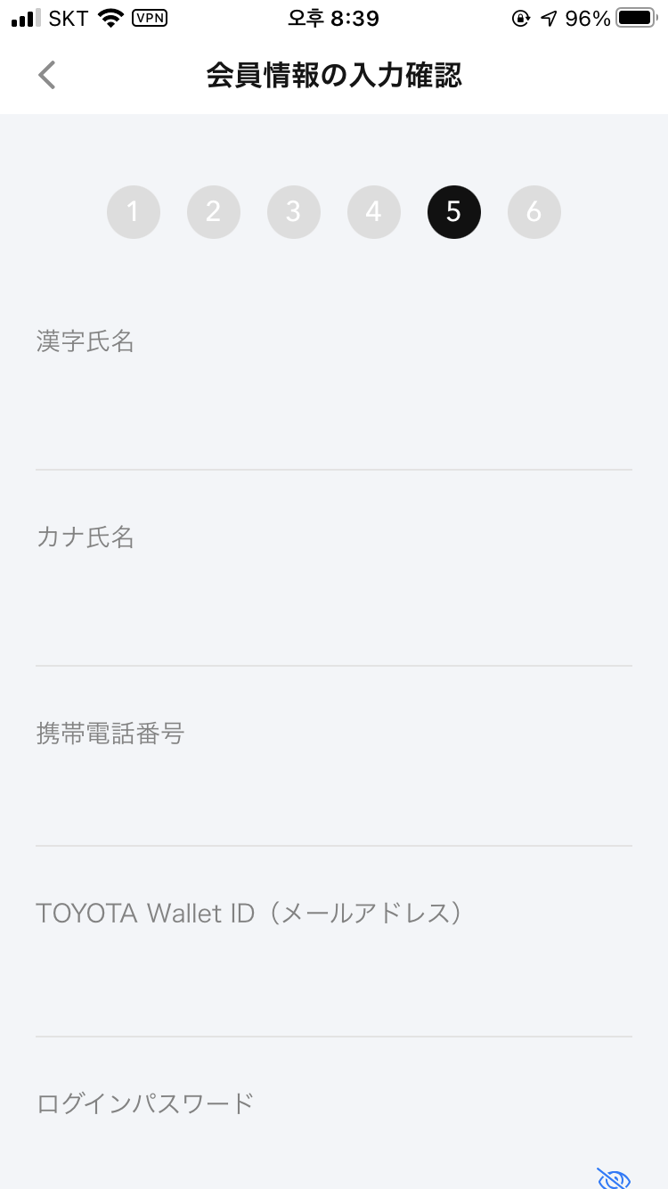 토요타 월렛 앱으로 돌아와 생년월일을 입력하고