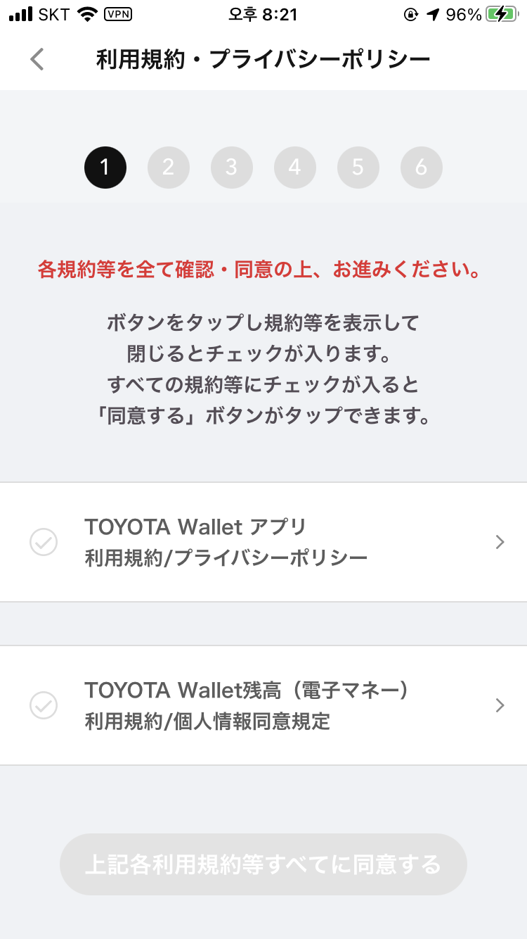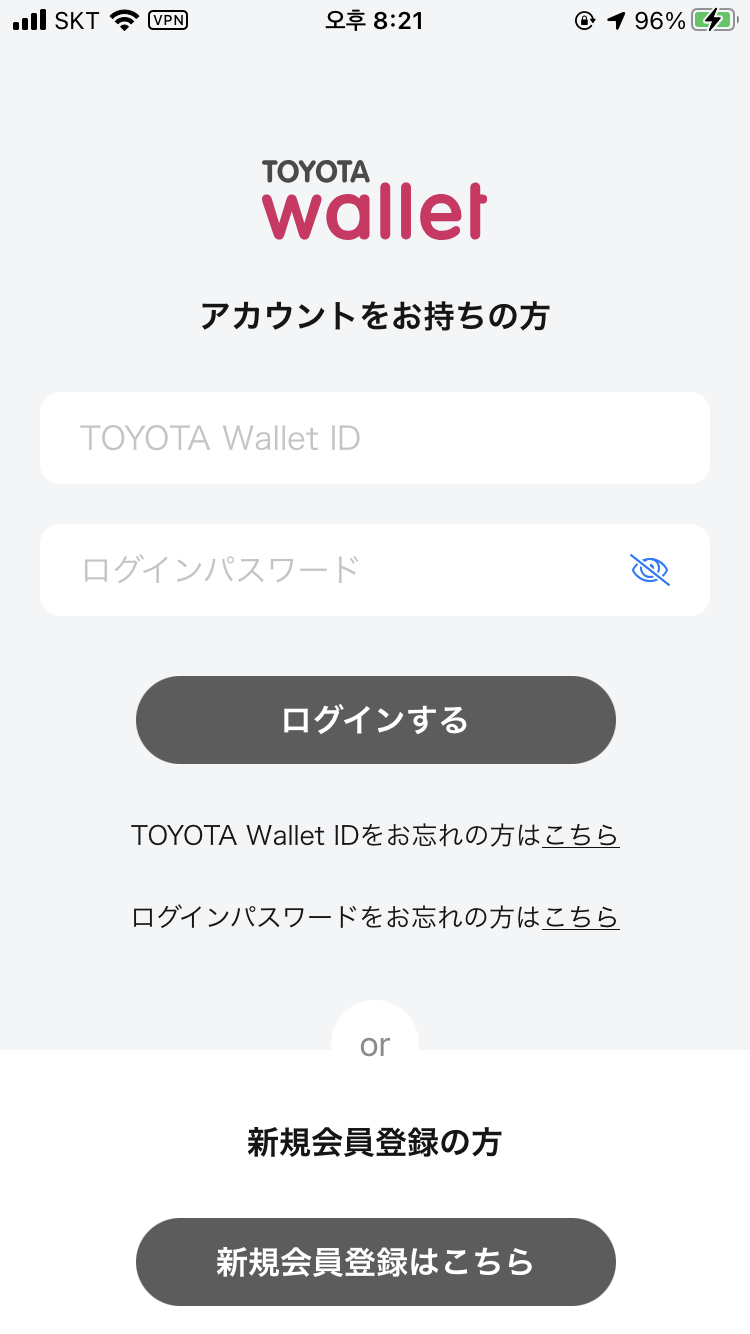 VPN을 켜고 토요타 월렛 앱을 켜야 합니다.