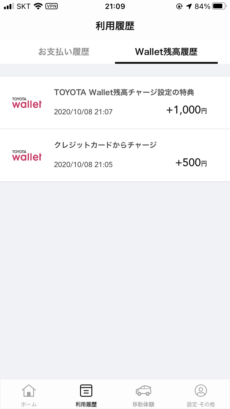 토요타 월렛 메인 화면으로 돌아오니 카드 잔액이 늘어난 것이 보입니다.