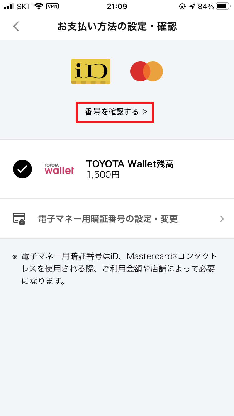 계획에 없던 1,000엔을 나중에 쓰기 위해 토요타 월렛 카드번호를 확인해보기로 했습니다.