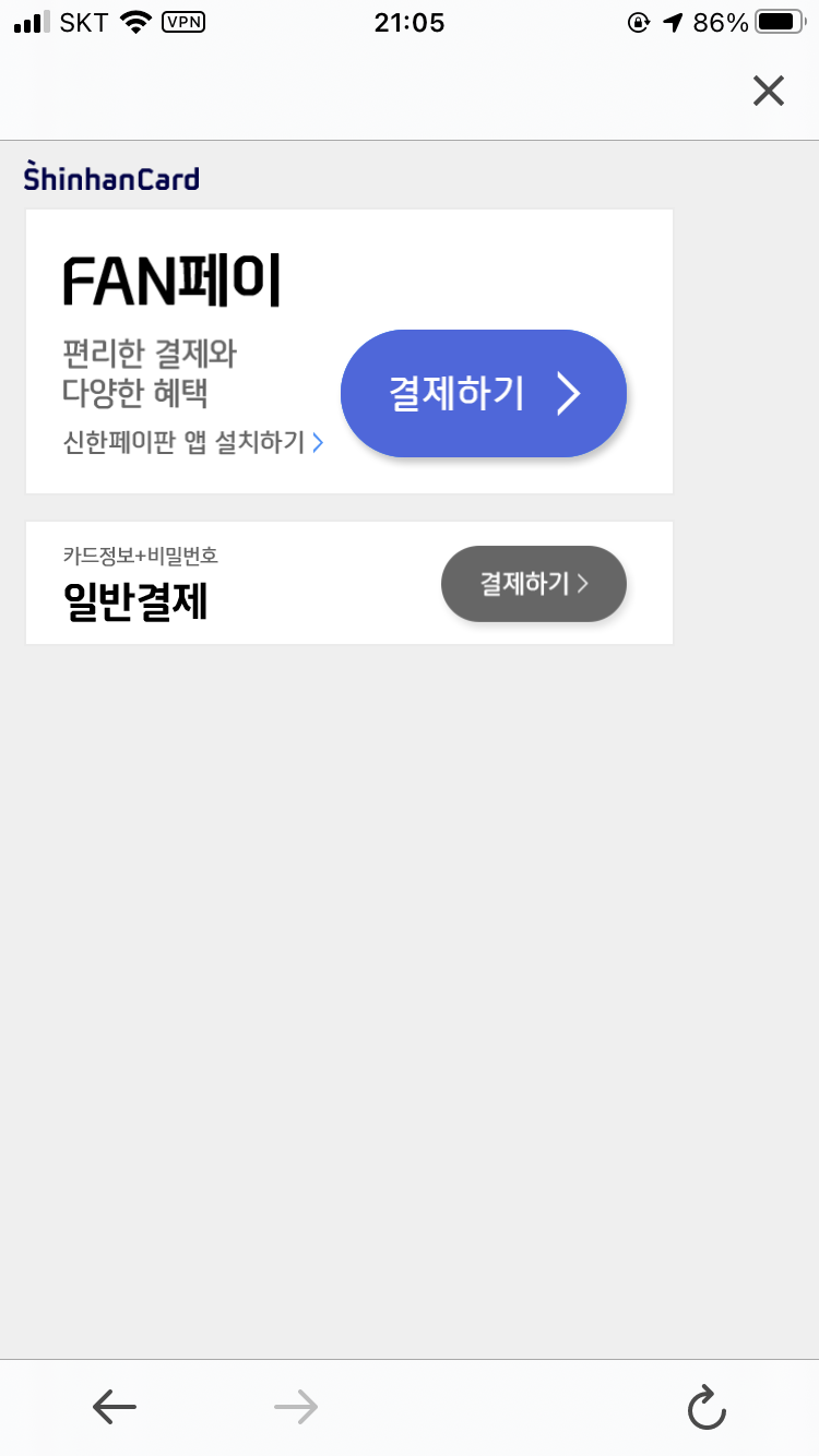 그래서 이번에는 신한 마스타 체크카드로 결제를 시도해보니
