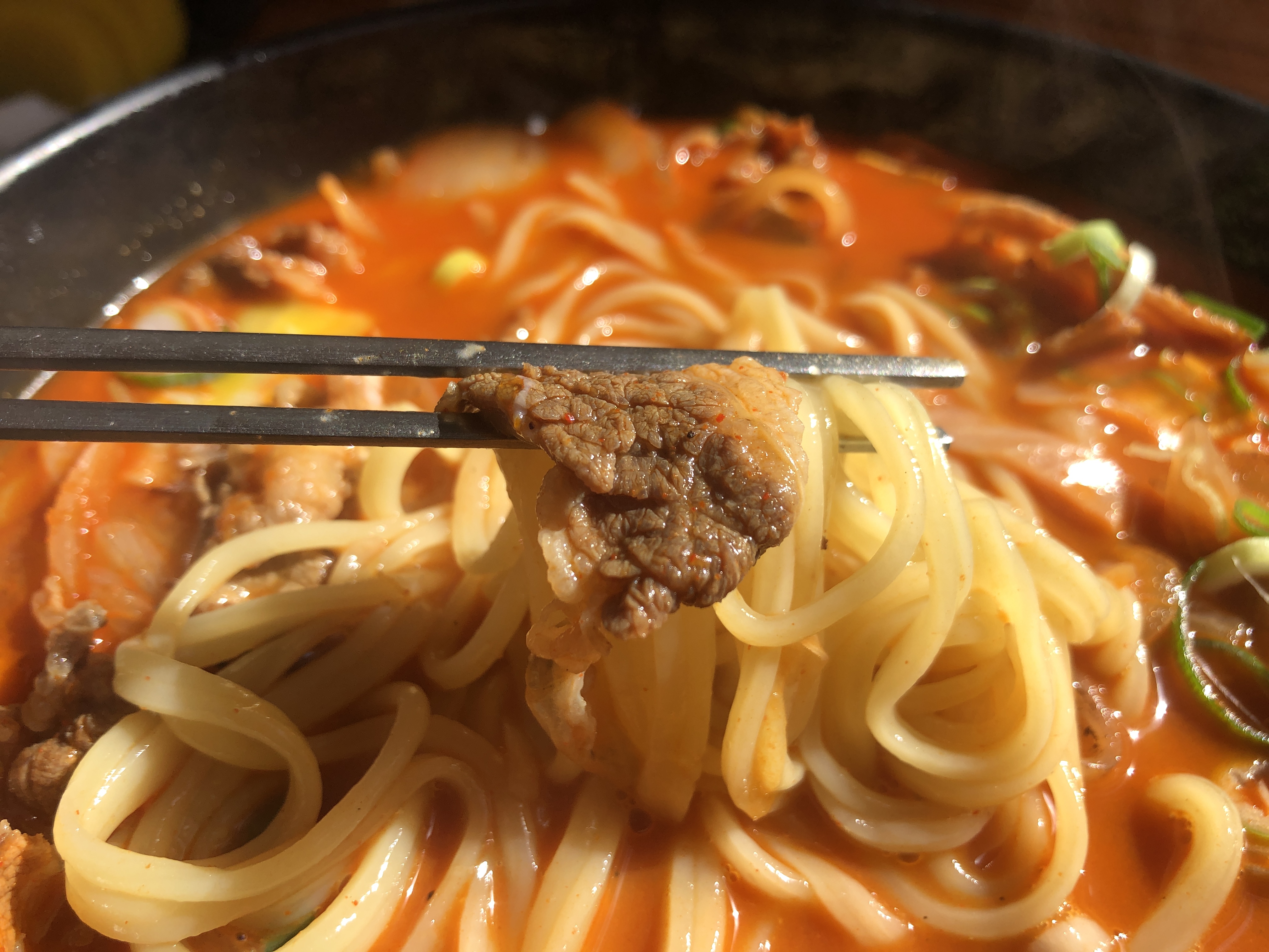 국물을 한 숟갈 떠서 먹어보니 불맛이 제대로 느껴집니다.