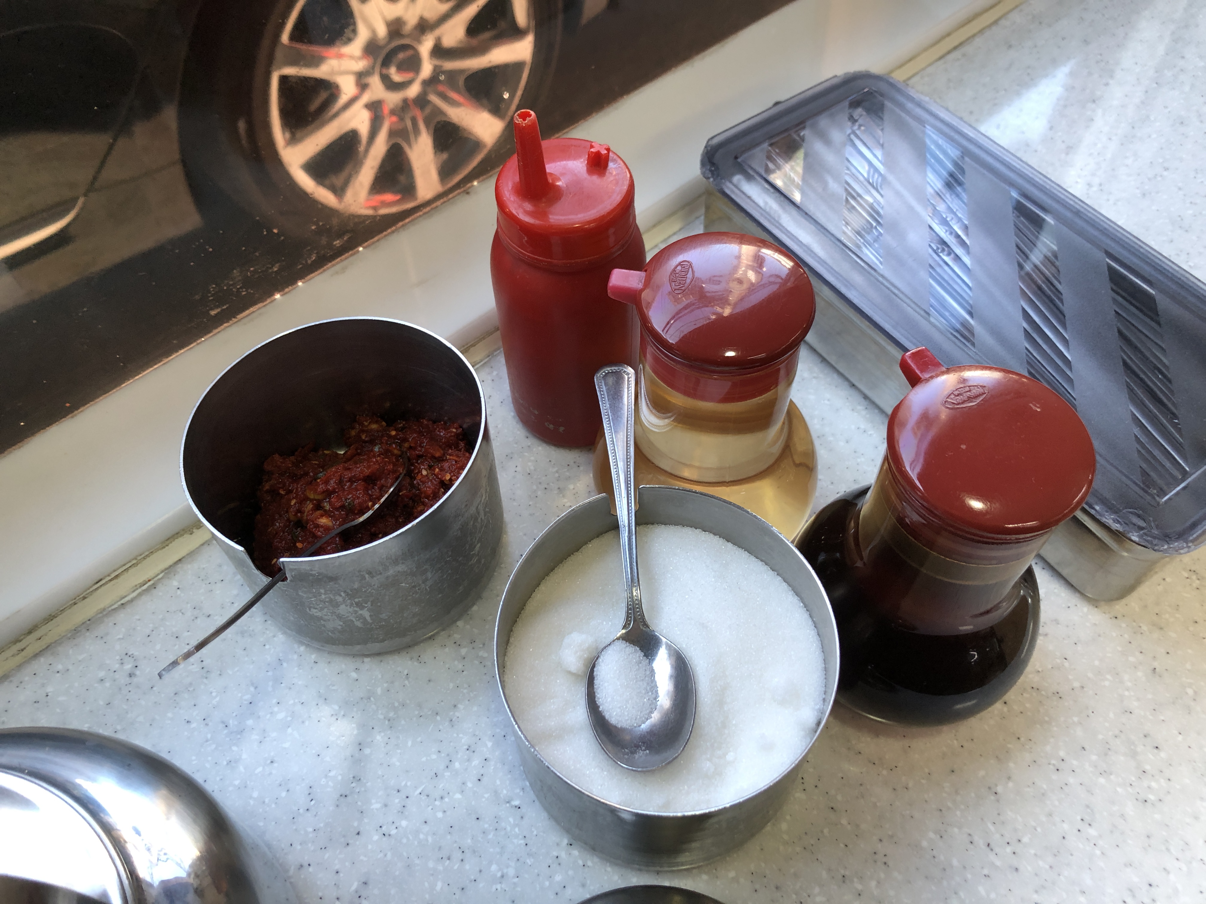 자리마다 취향에 맞게 넣어먹으라는 추가 양념이 놓여있지만