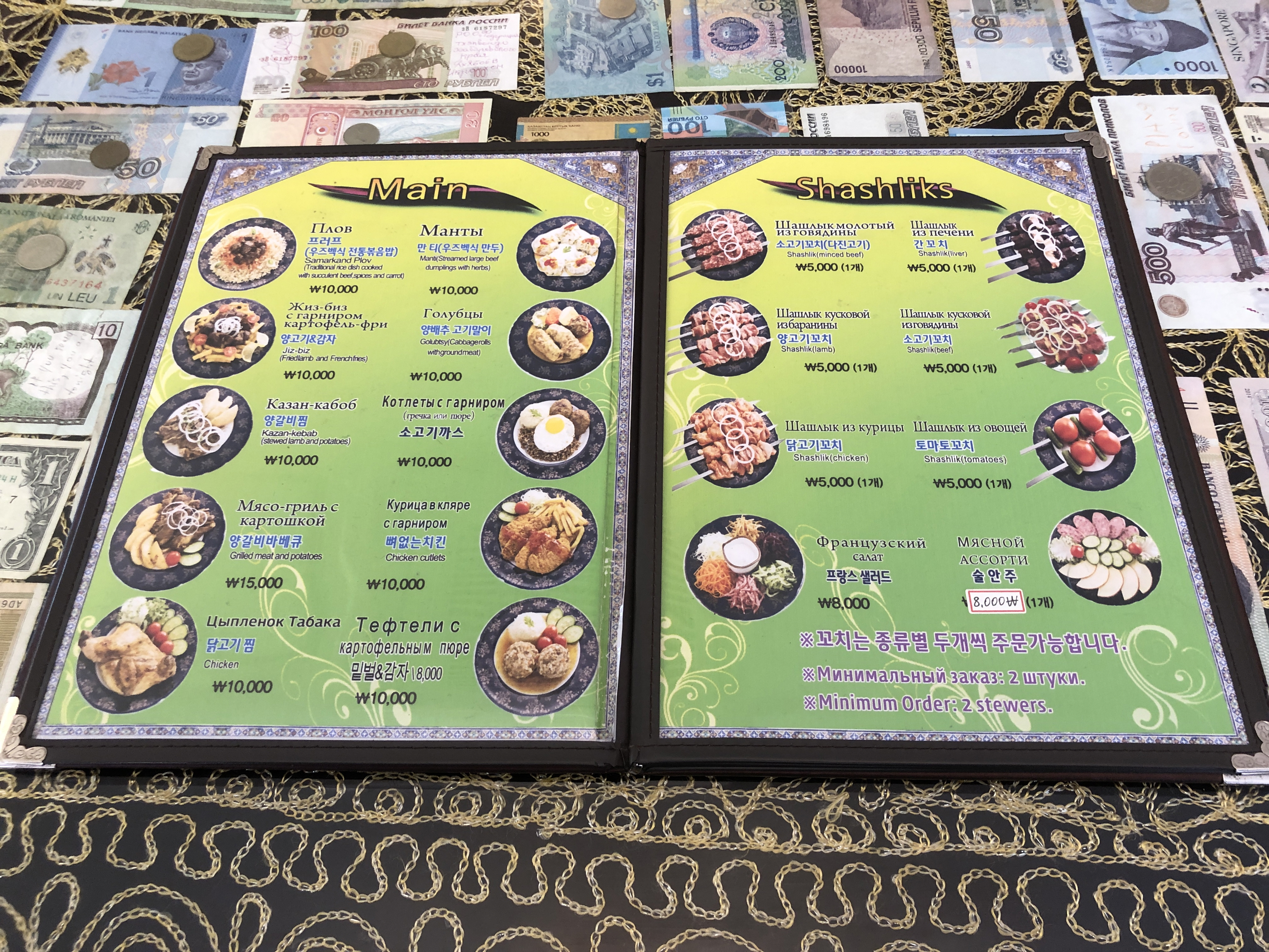 러시아나 우즈베키스탄 등 중앙아시아 국가들의 요리를 팔고 있는 식당이 많습니다.