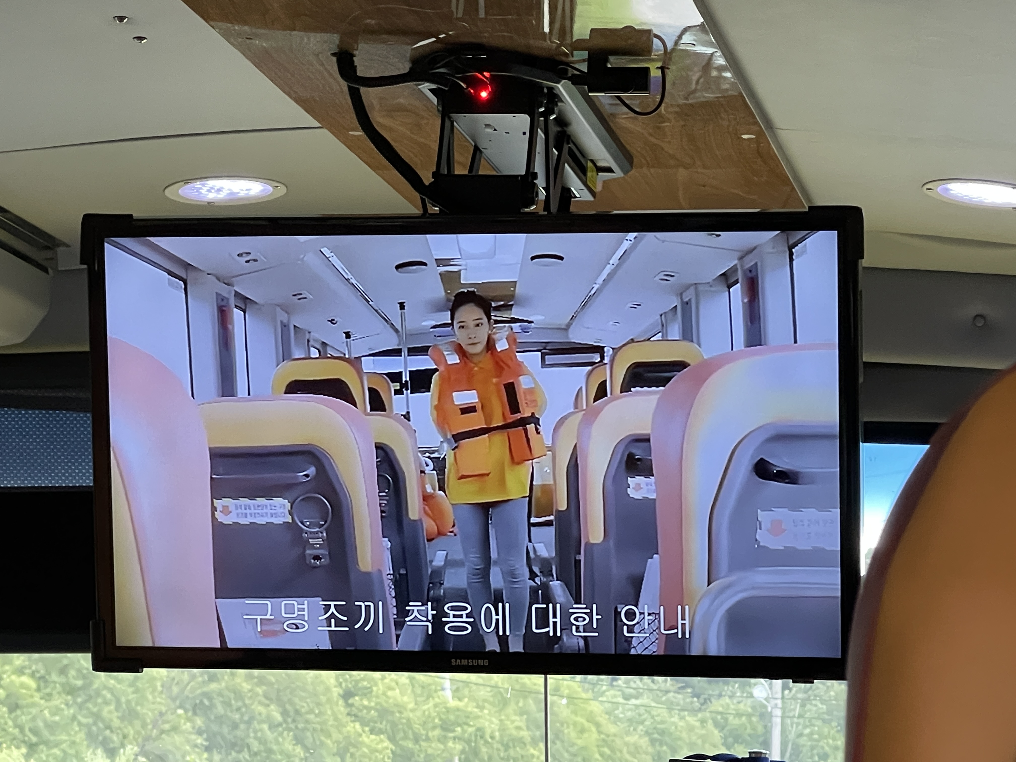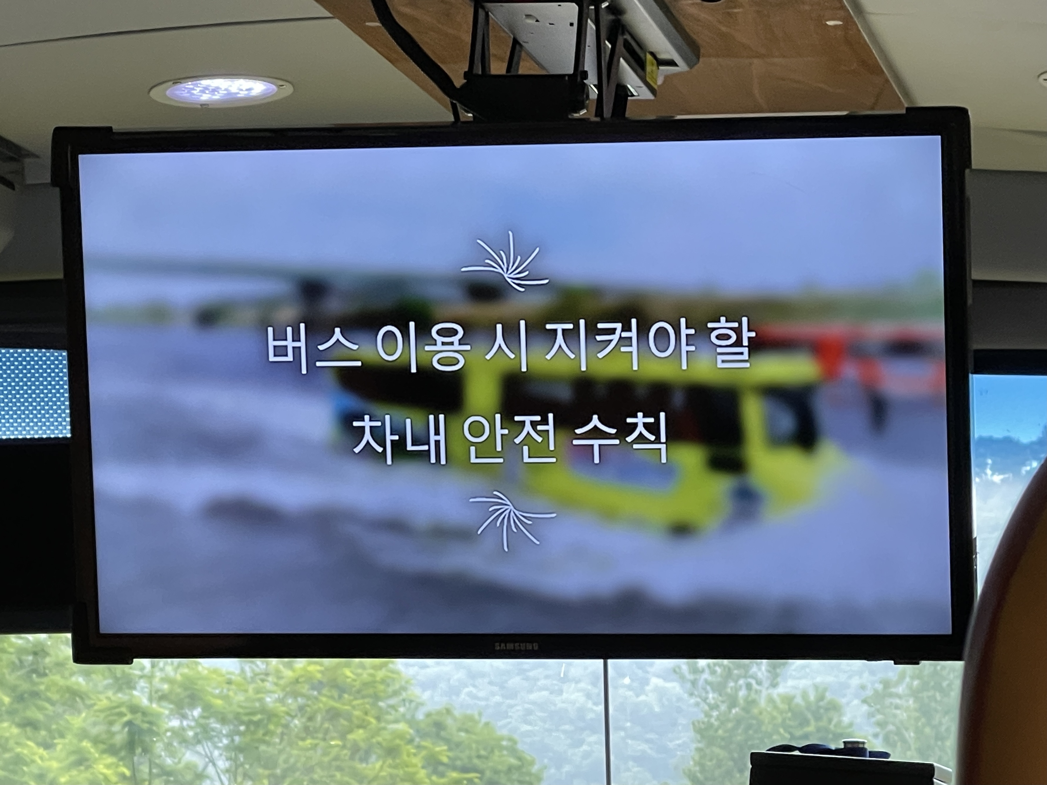 버스가 백제문화단지를 출발하면 모니터에 안전 수칙이 나오는데요.