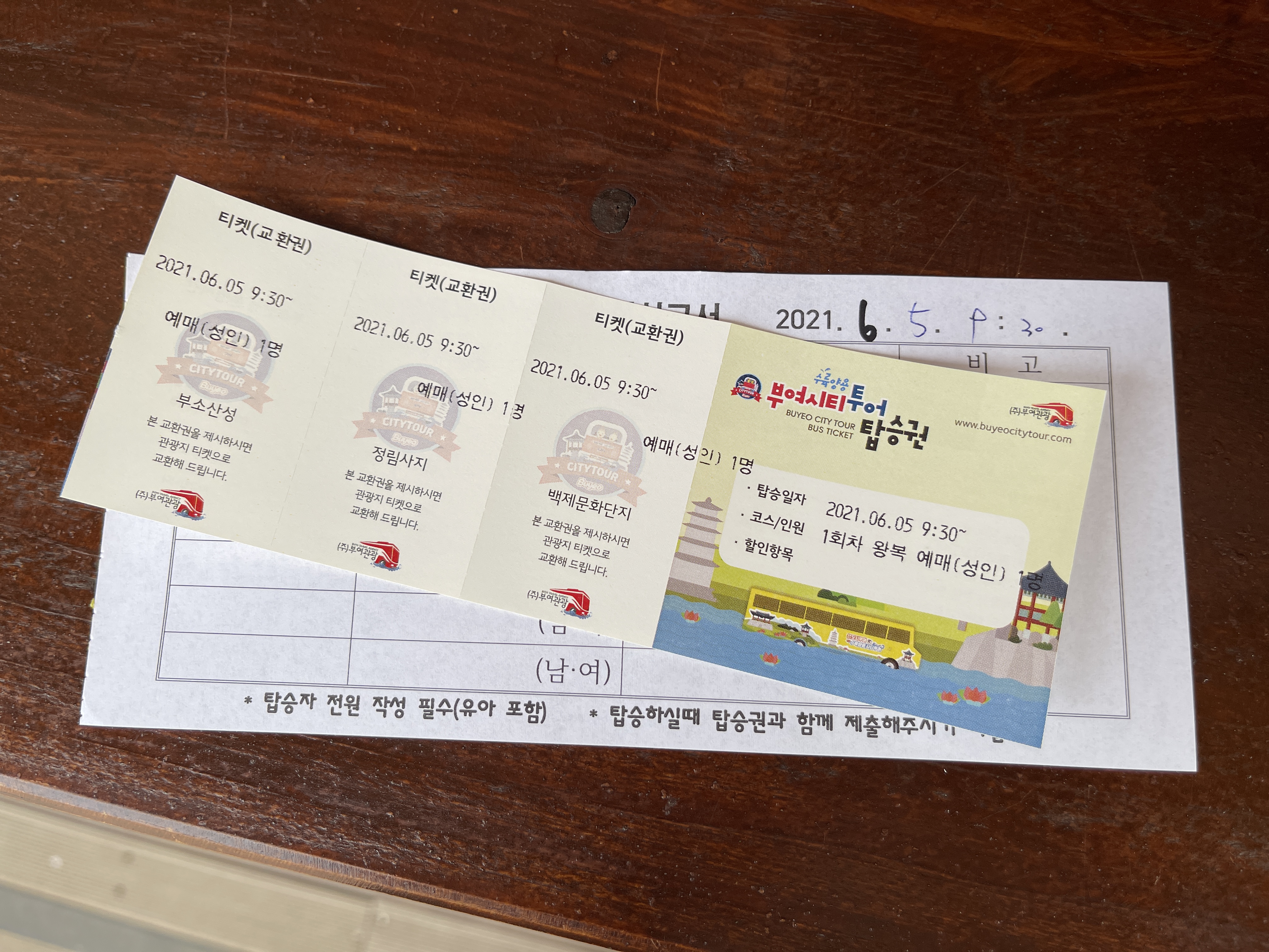 승선신고서 작성 내역을 확인하면 버스에 탈 때 제출하라고 탑승권과 함께 줍니다.