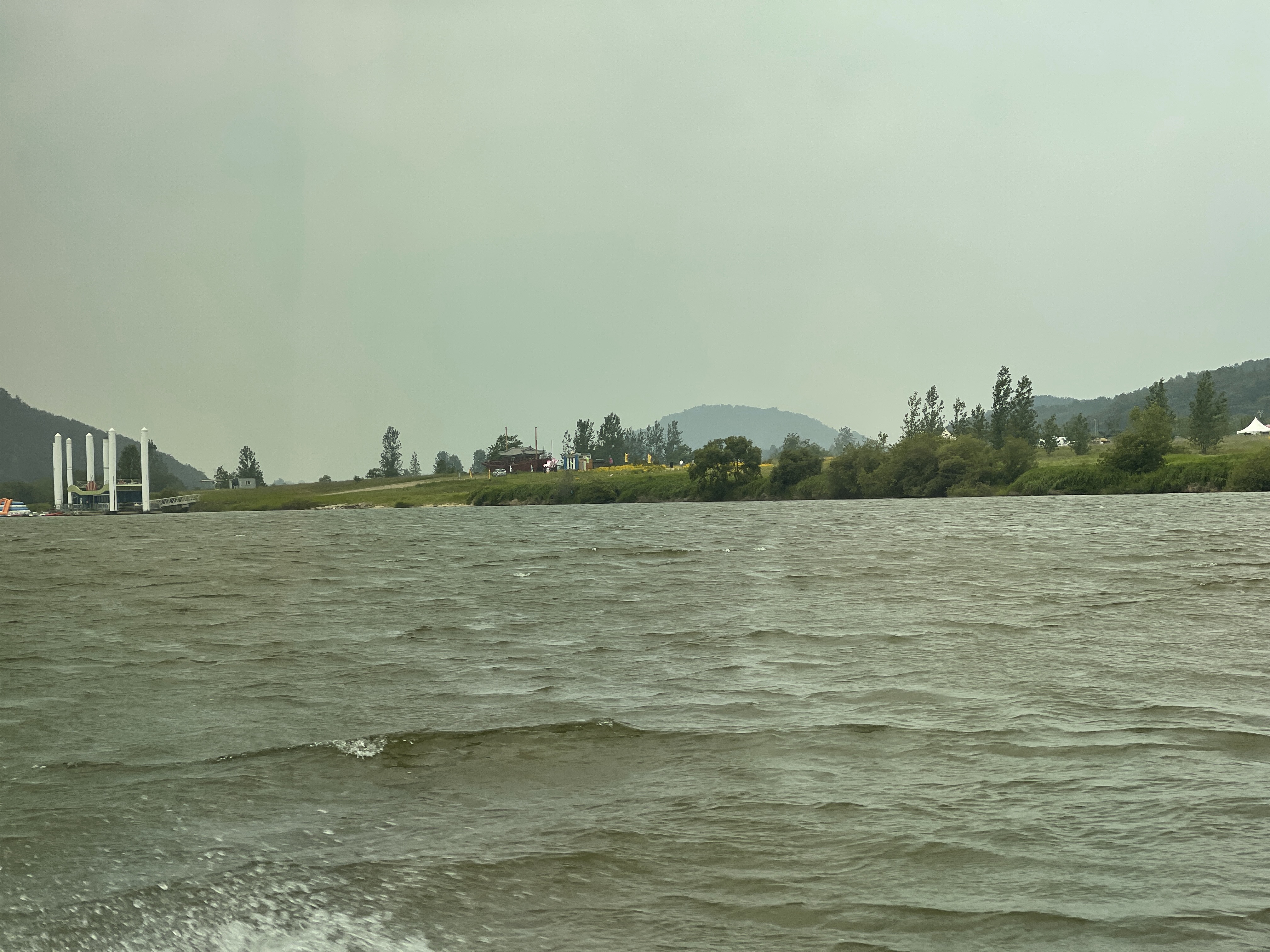 버스는 어느새 백마강 레저파크에 진입해 도하 준비를 합니다.