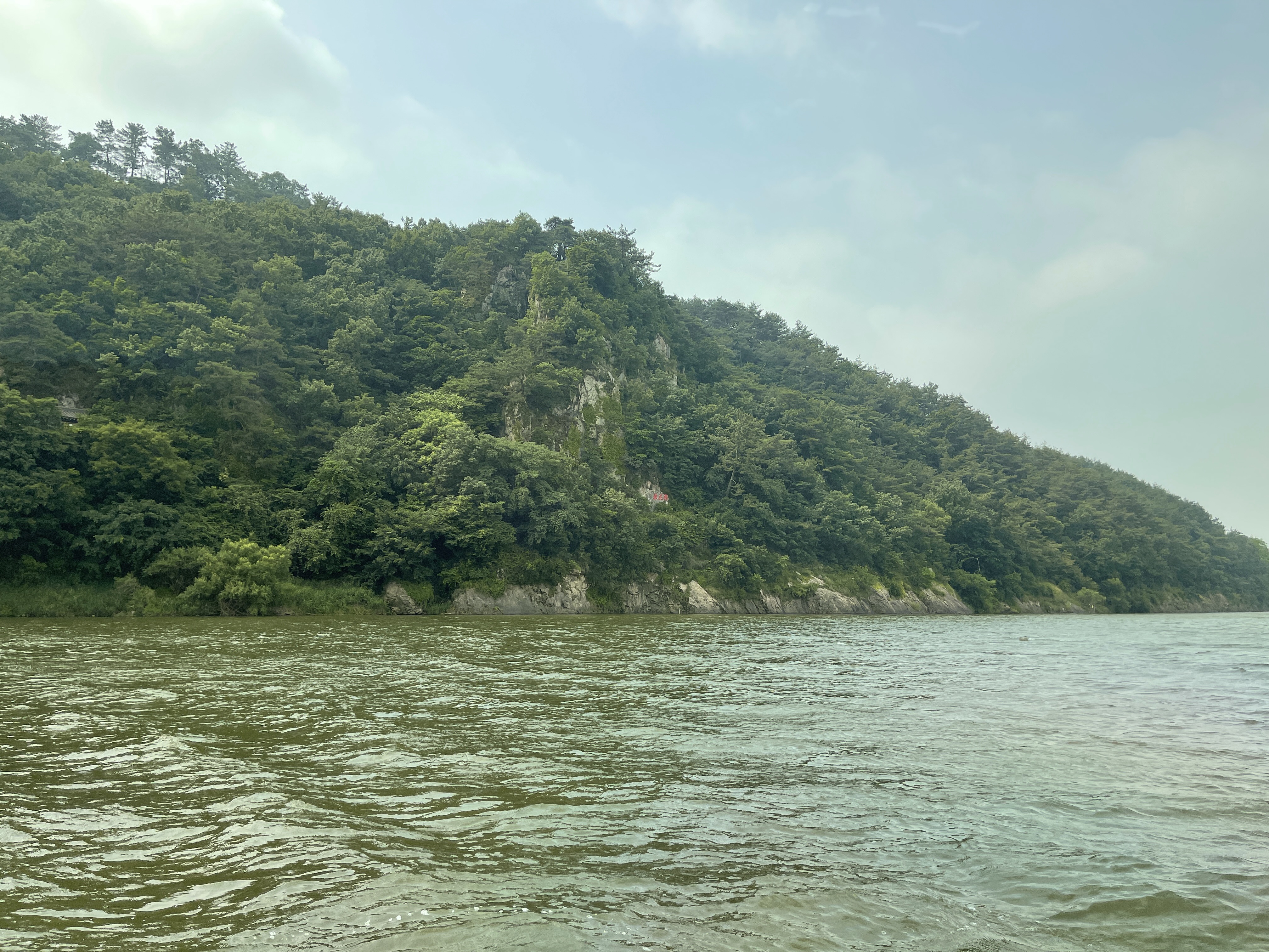 백마강(금강) 위를 떠다니며 고란사, 낙화암 등을 보다