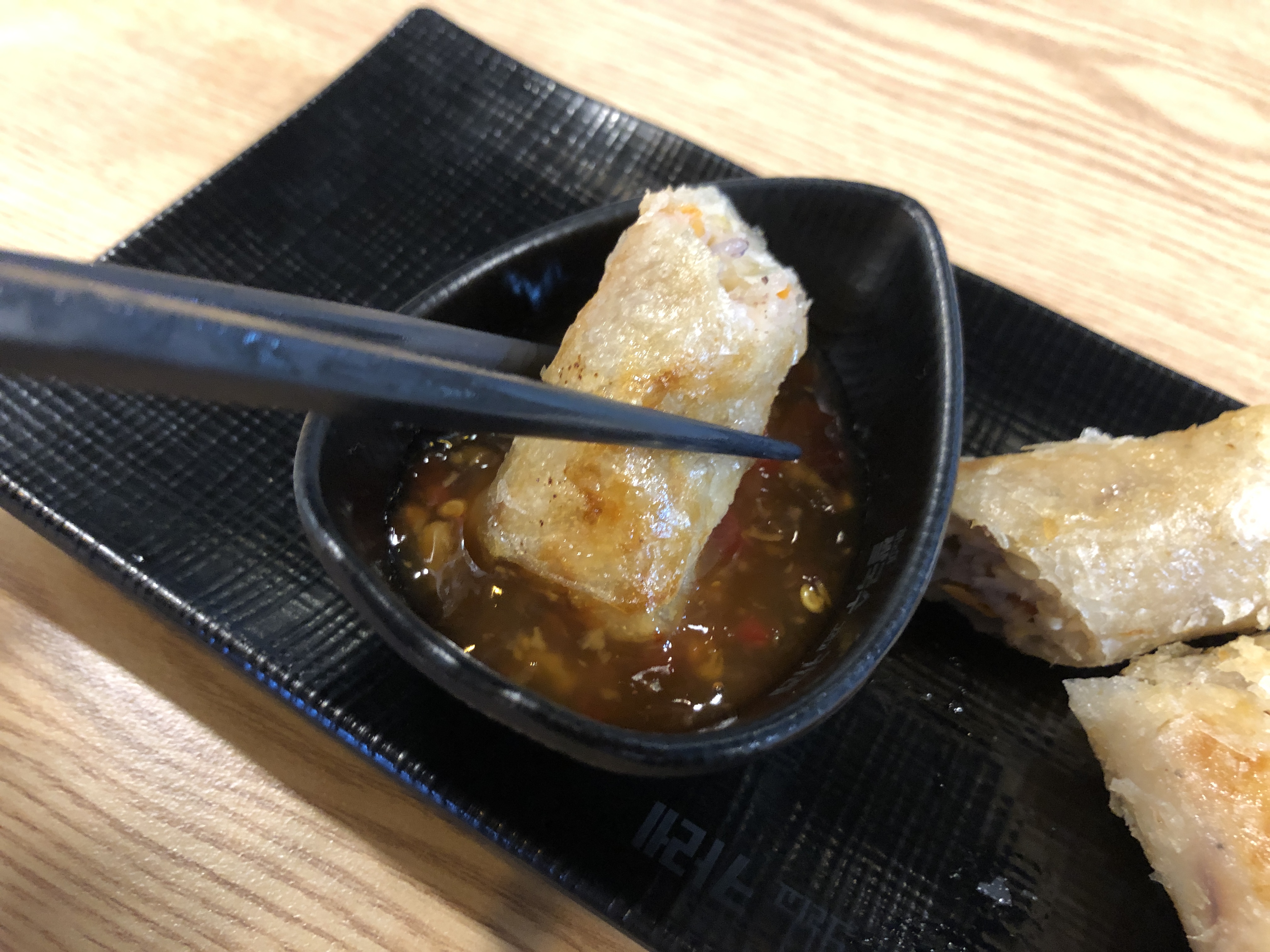 쌀국수를 먹다 말고 짜조를 소스에 찍어 먹었는데