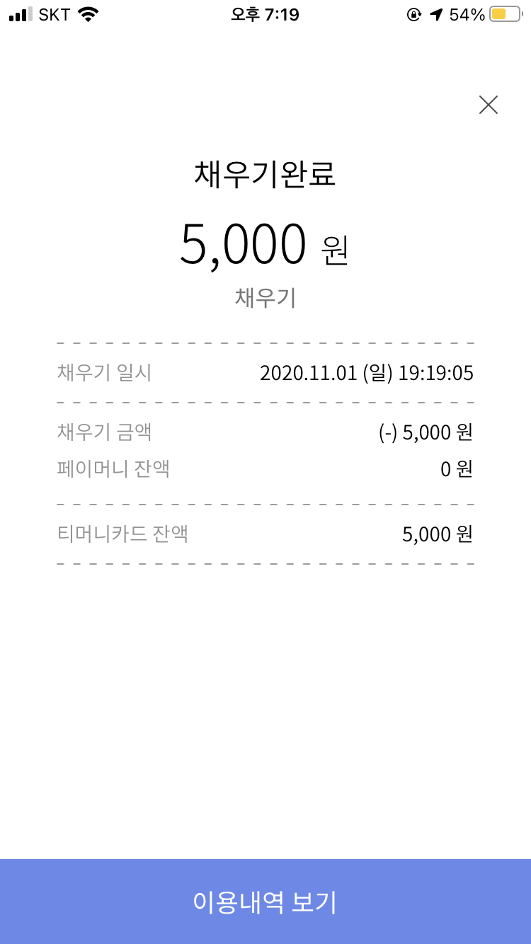 그 페이머니로 티머니를 충전하면 끝.