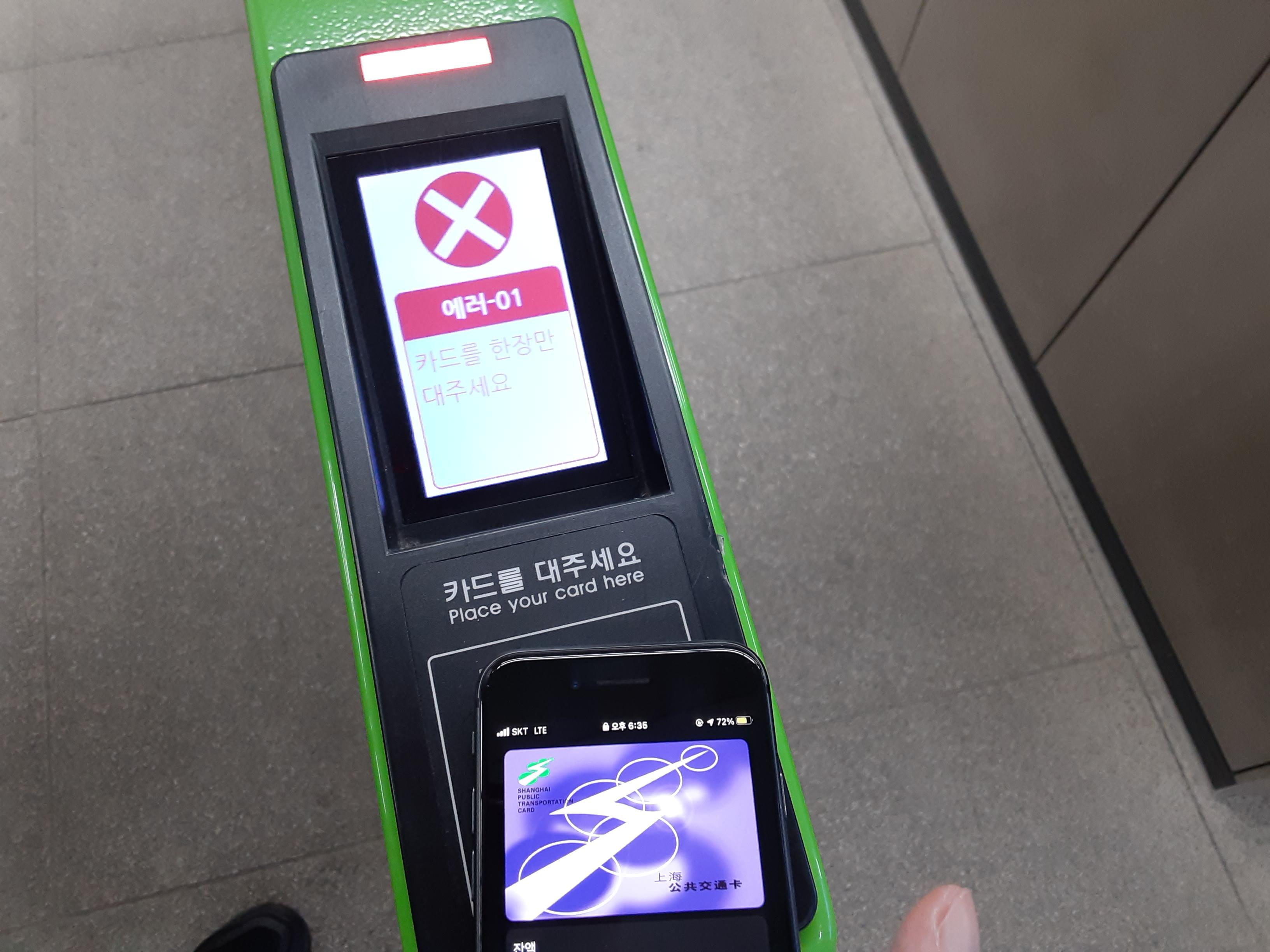다만 상하이 교통카드처럼 NFC Type A 교통카드가 애플페이에 담겨 있다면
