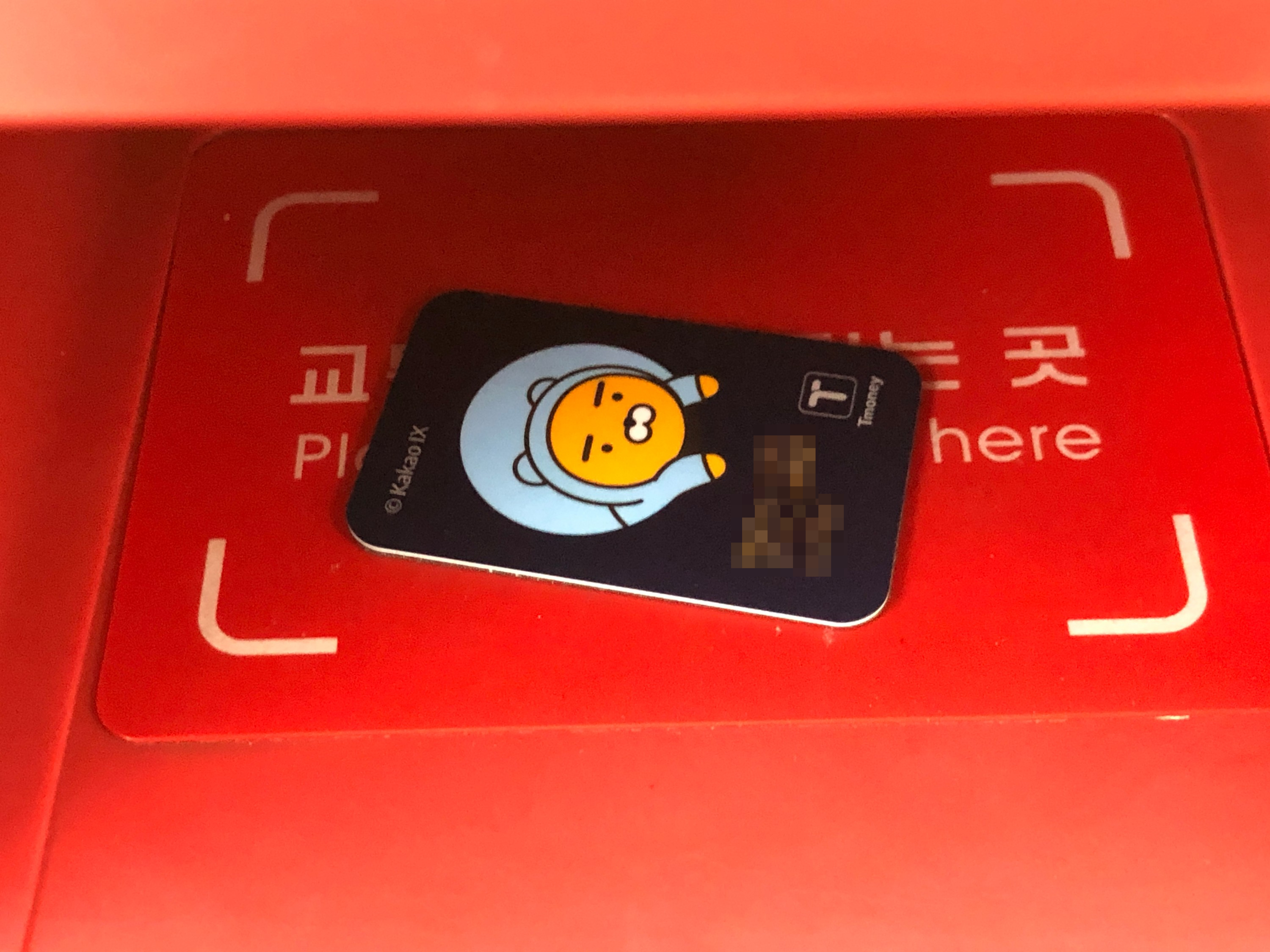 스티커형 티머니를 아이폰에 붙이지 않고 그대로 교통카드 단말기에 대도 아무 문제없이 인식됩니다.
