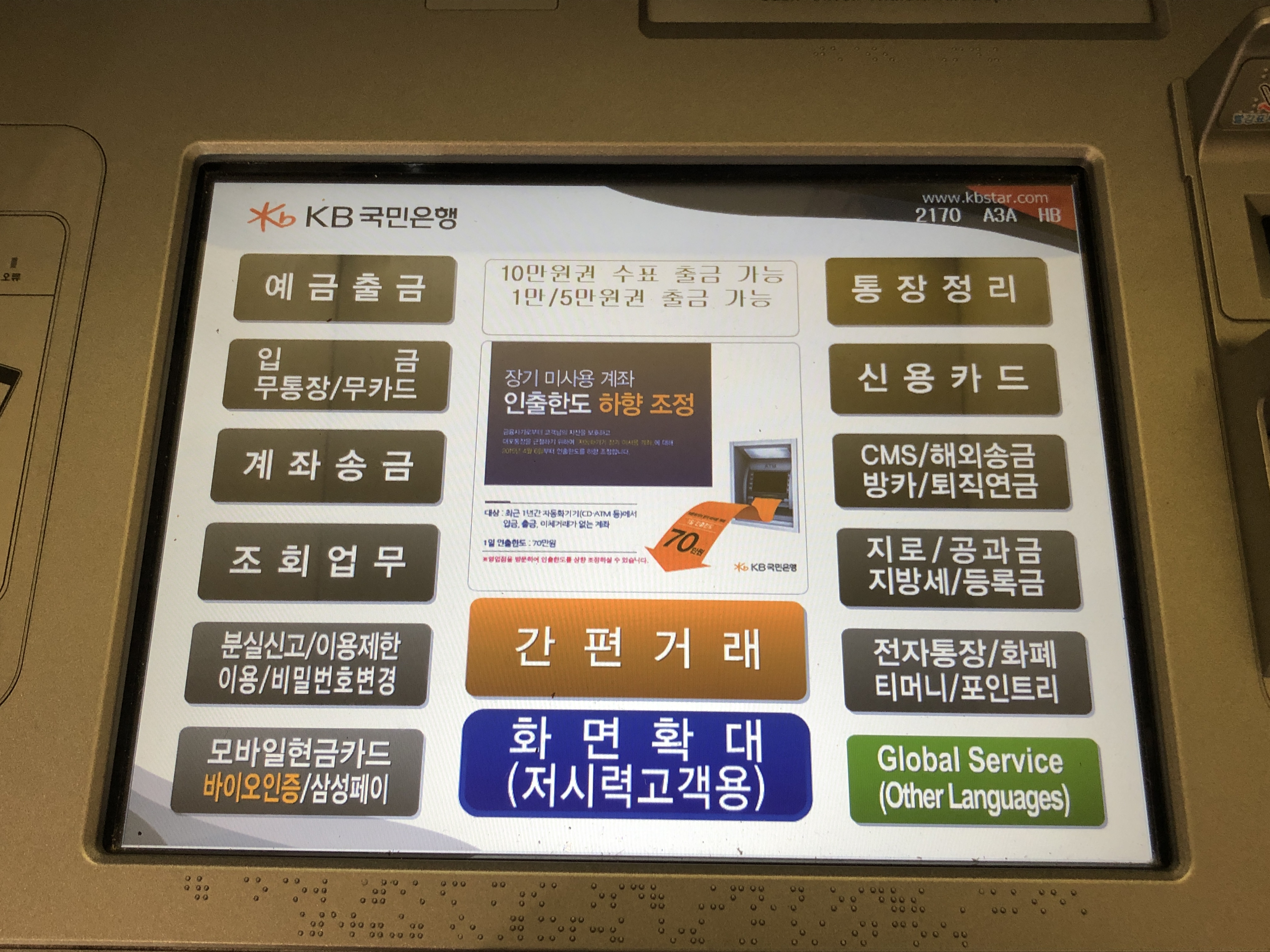 국민은행 ATM기와 거의 비슷한 메뉴로 들어가서