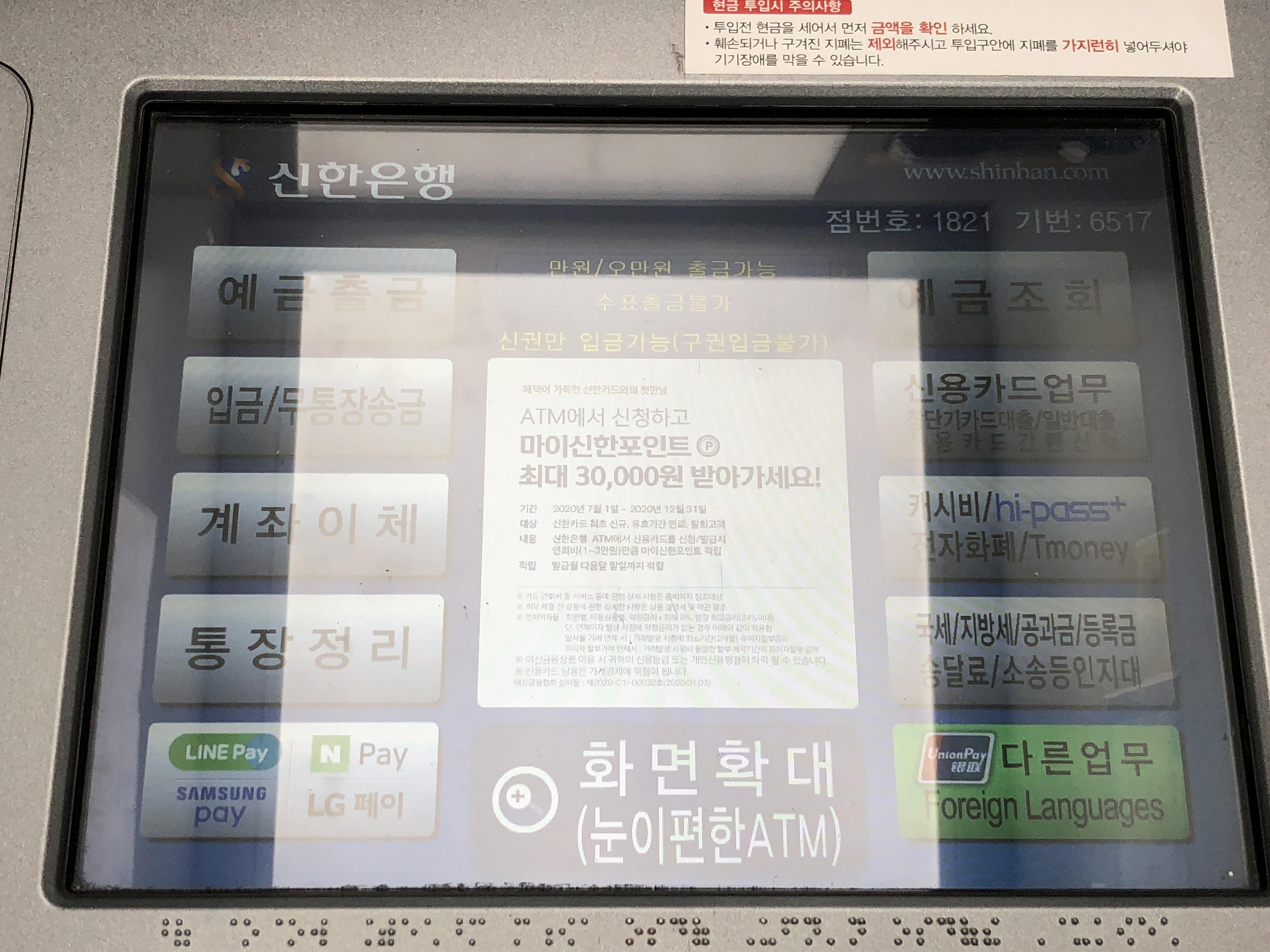 신한은행 현금카드를 들고 국민은행 ATM에 가봤습니다.